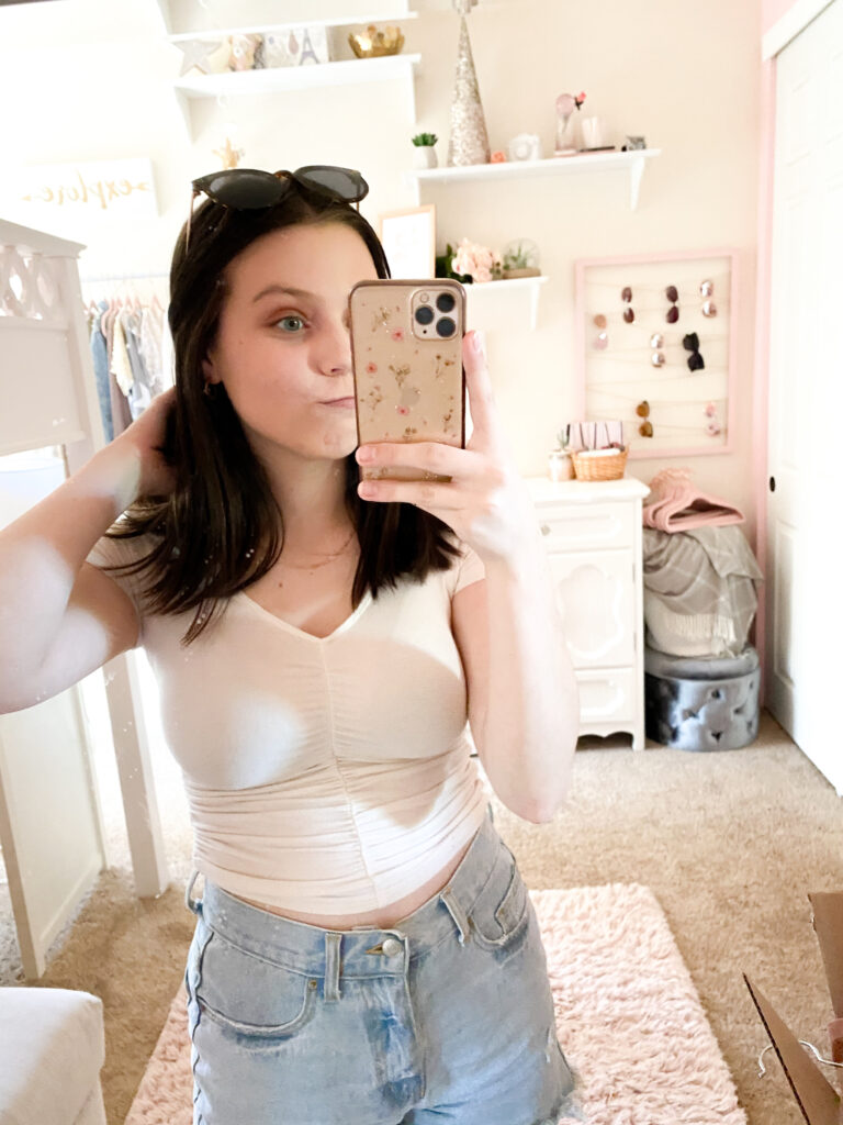 Outfit Links: Top (in a small, tts) | Shorts (in a 27, tts but go up if you prefer a looser fit) | Sunglasses