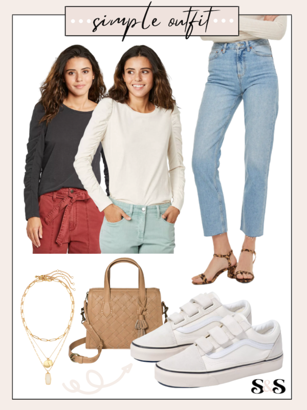 This simple outfit is a great basic option for spring that can easily be made less basic with some fun accessories! It has some great must have pieces a well as a fun pair of sneakers!