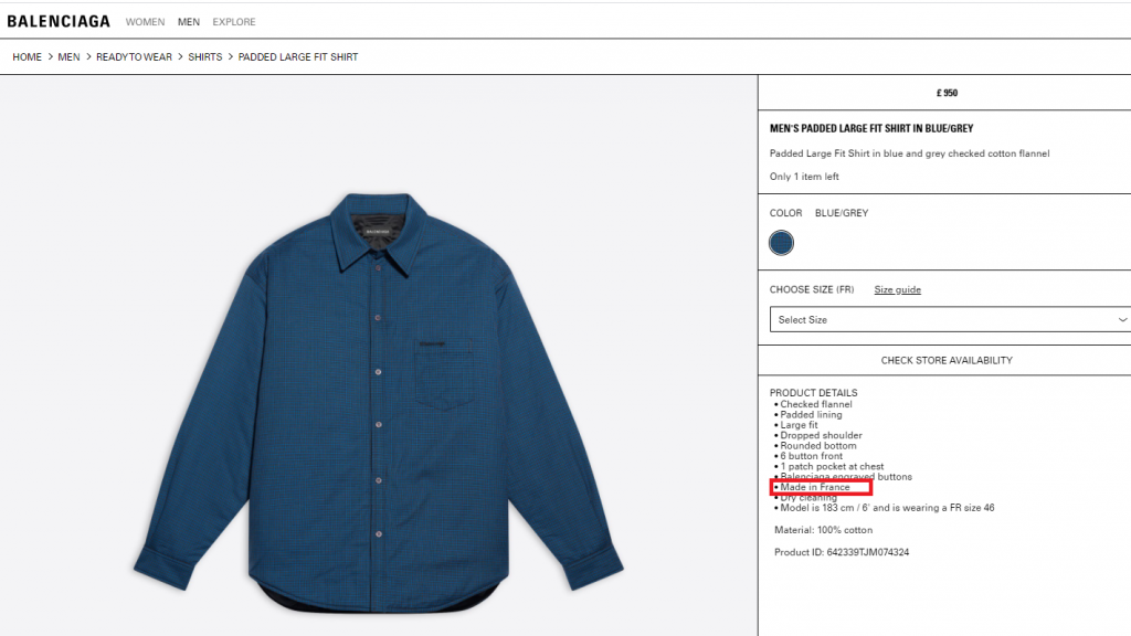 I didn’t find one Balenciaga item without the country of origin, which is impressive since this luxury label manufactures heavily in Italy and China. Of course, we all know luxury fashion brands avoid putting made in China in the product description of their website, so it was quite refreshing.