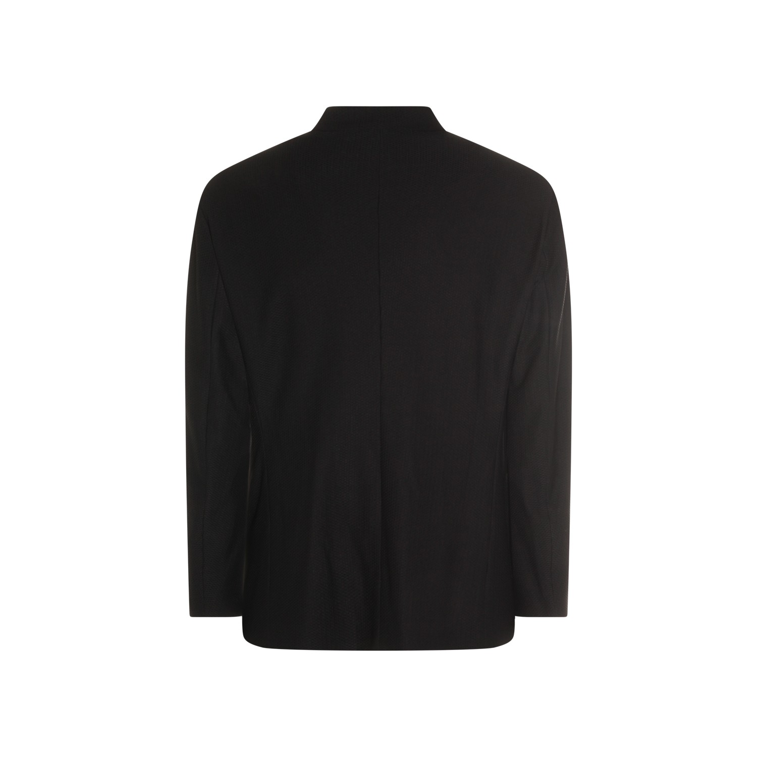 Black blazer from Giorgio Armani featuring long sleeves, frontal button fastening, pockets and regular vestibility.