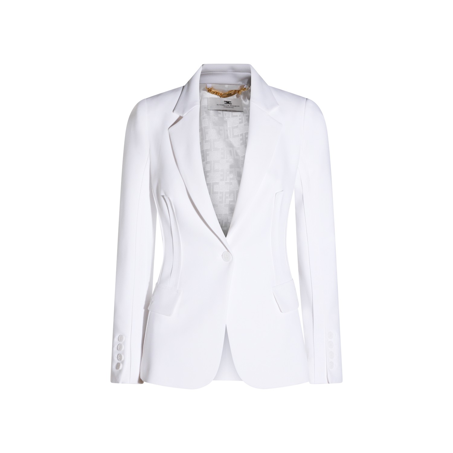 Ivory blazer from Elisabetta Franchi featuring lapel collar, long sleeves, button fastening, curved hem and regular fit.