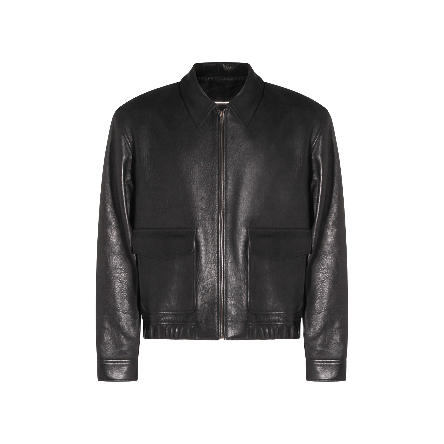 Black leather jacket from Saint Laurent featuring long sleeves, shirt collar, zip fastening, pockets and regular vestibility.