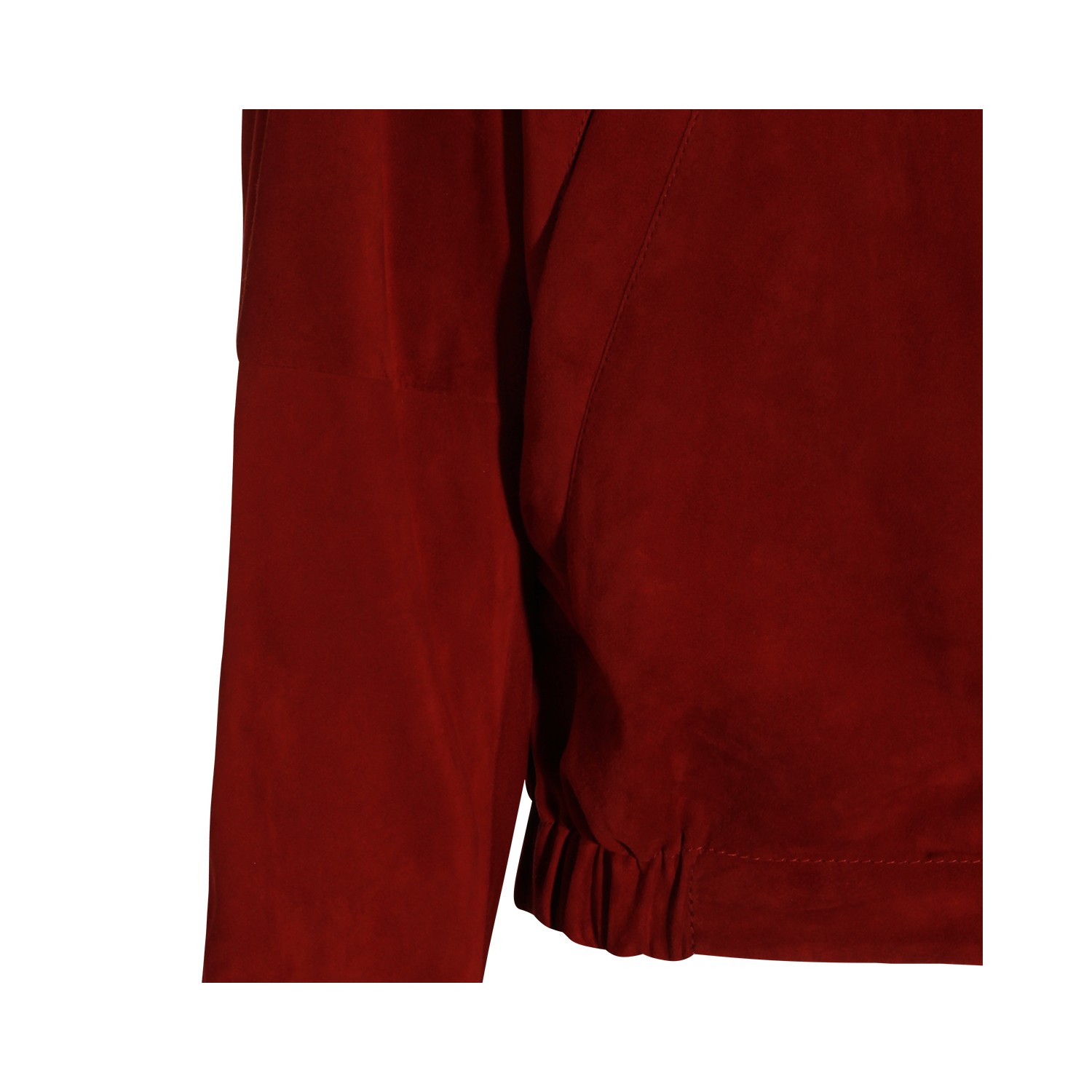 Cherry leather jacket from Brunello Cucinelli featuring long sleeves, high neck, zip closure at front, ribbed hems and side pockets.