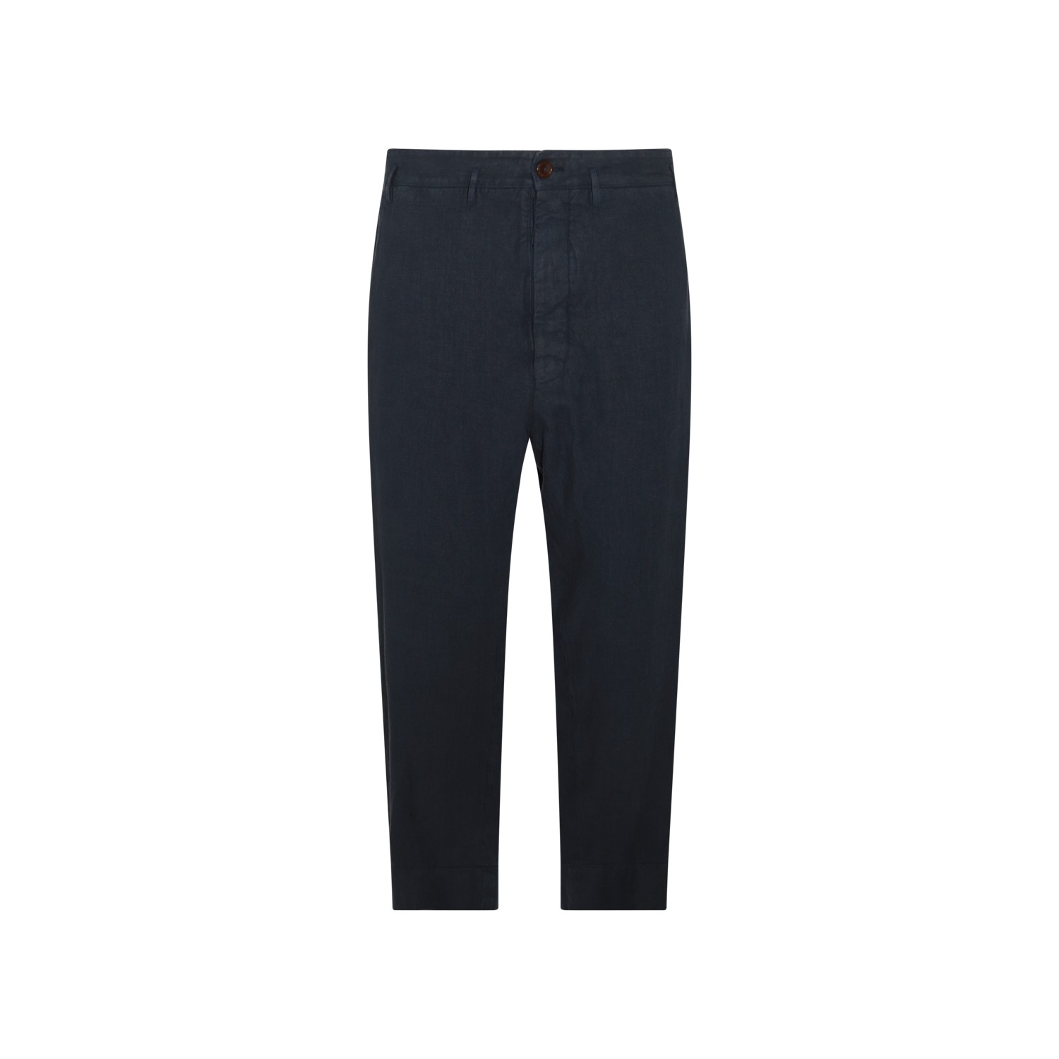 Blue linen pamts from Vivienne Westwood featuring frontal zip and button fastening, belt loops, pockets and regular vestibility.