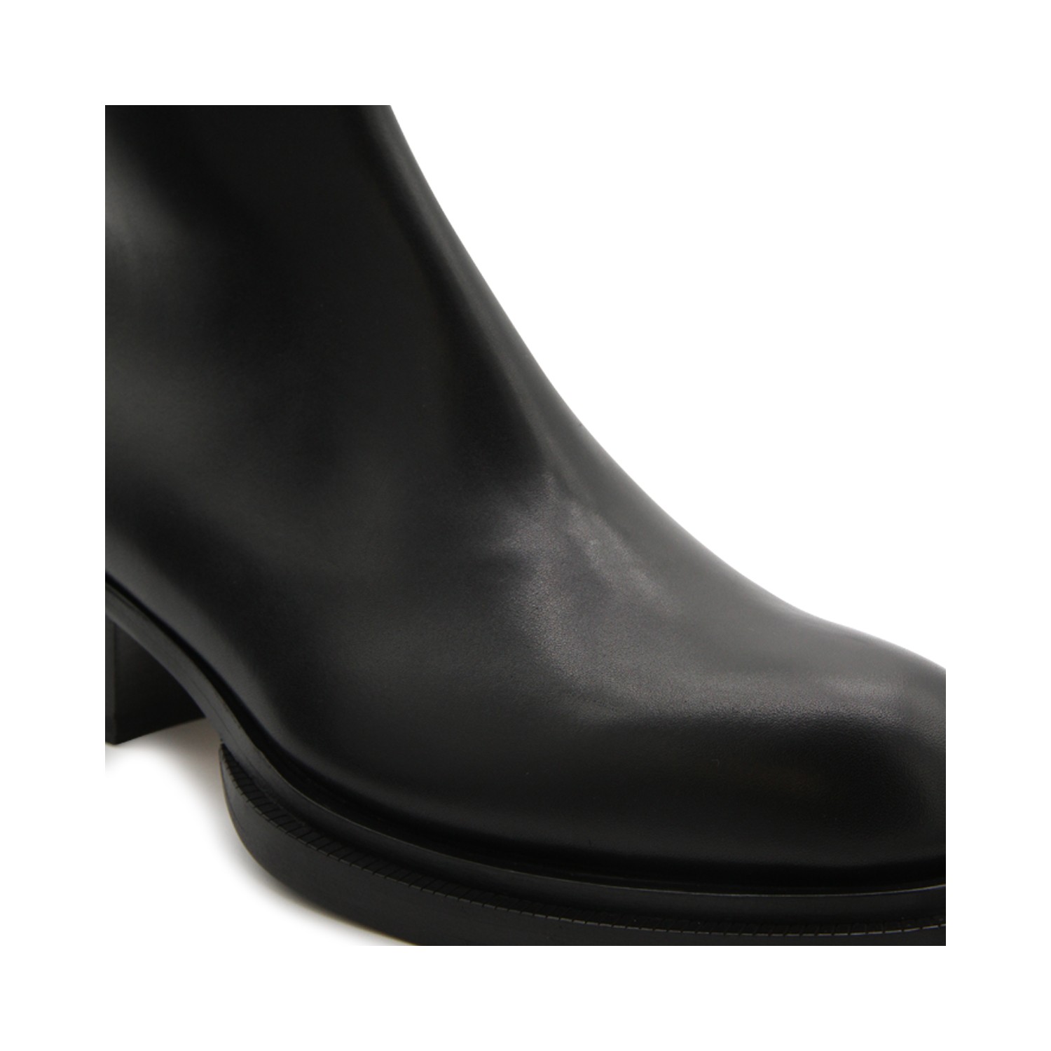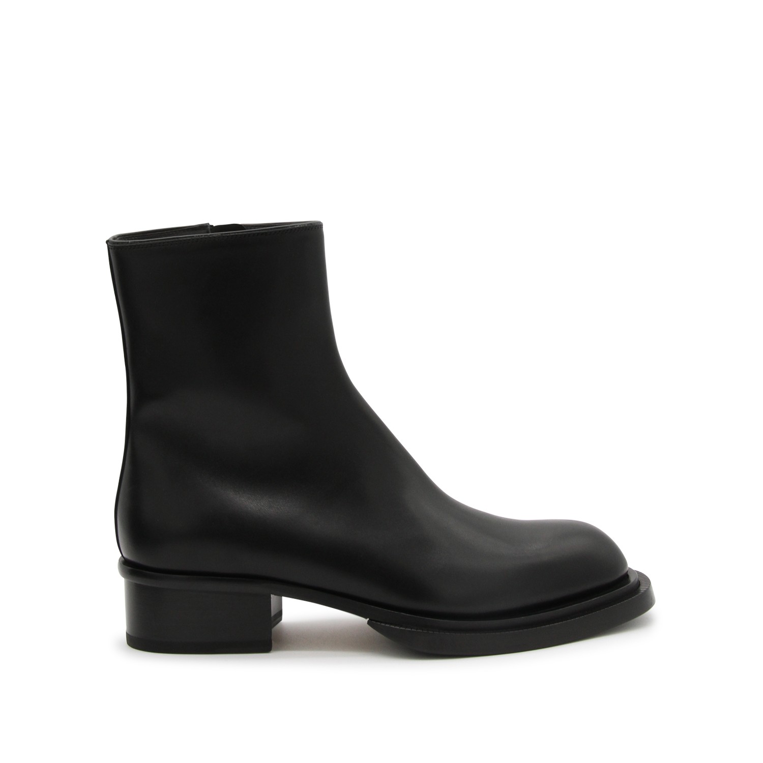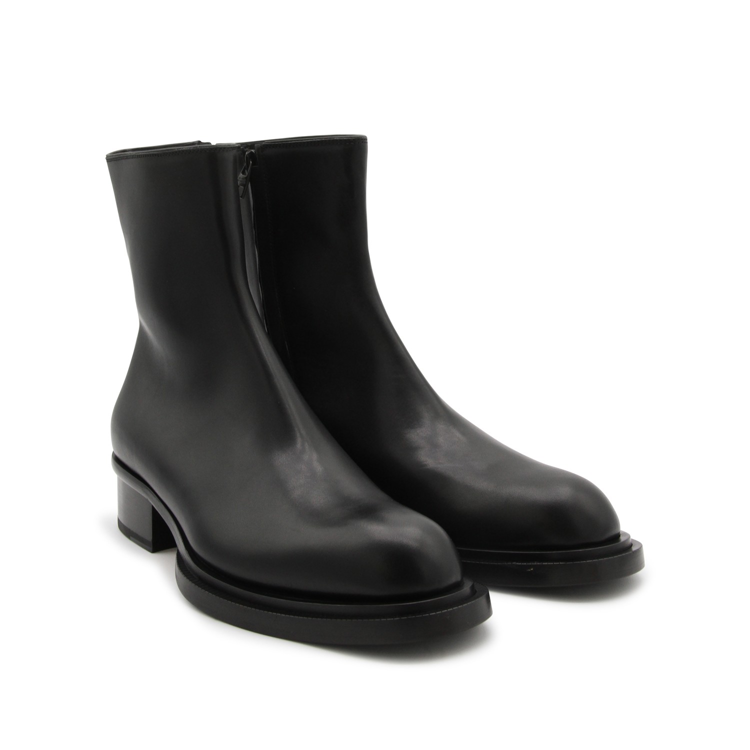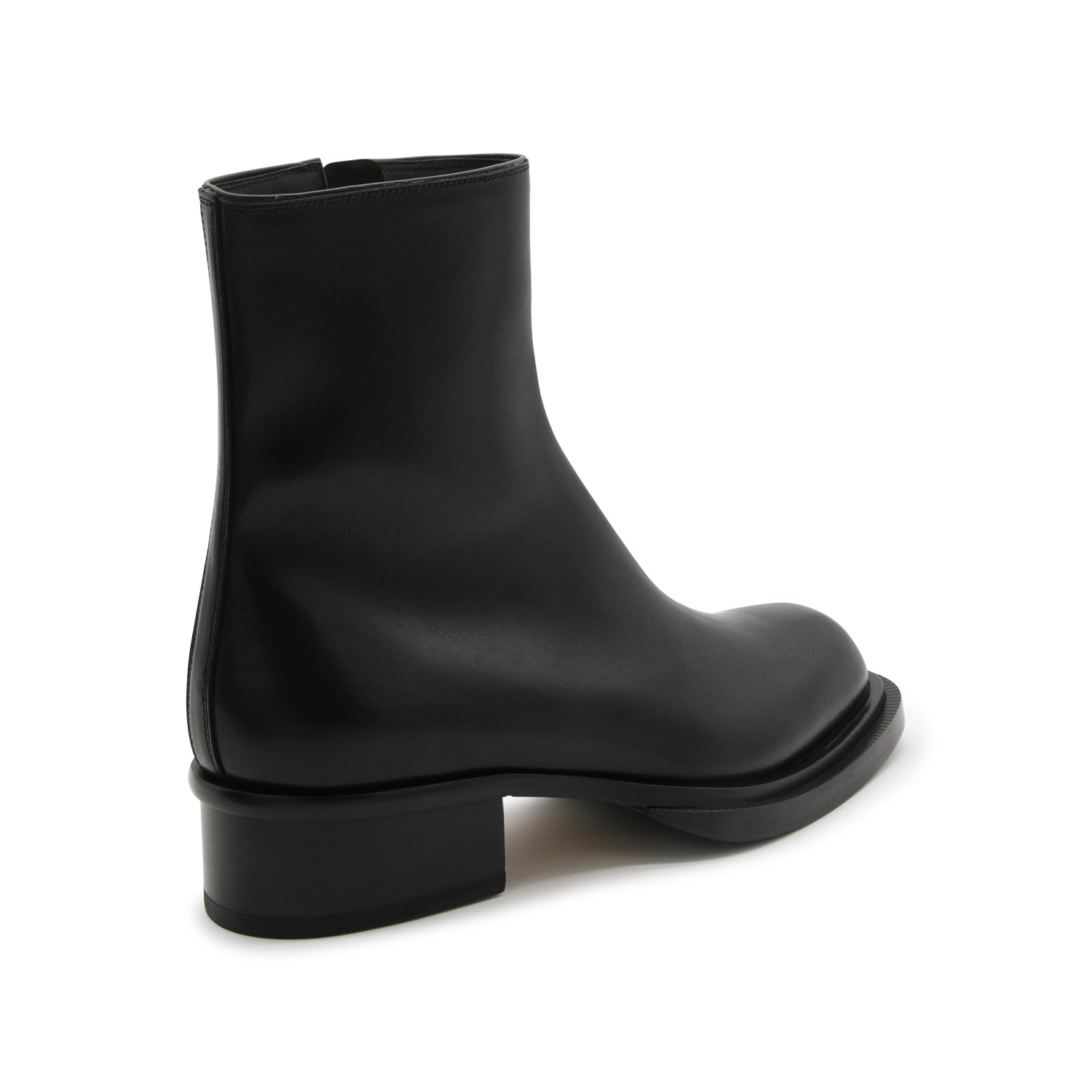 Black leather Stack boots from Alexander McQueen featuring side zip closure, round toe, ankle lenght and leather insole.