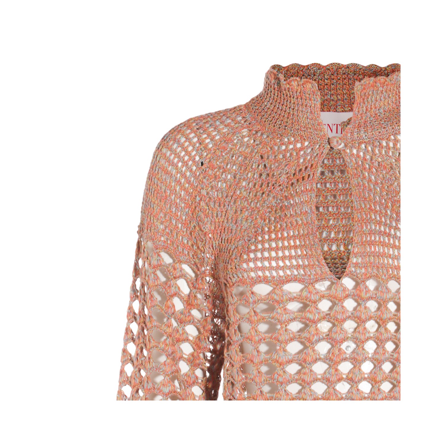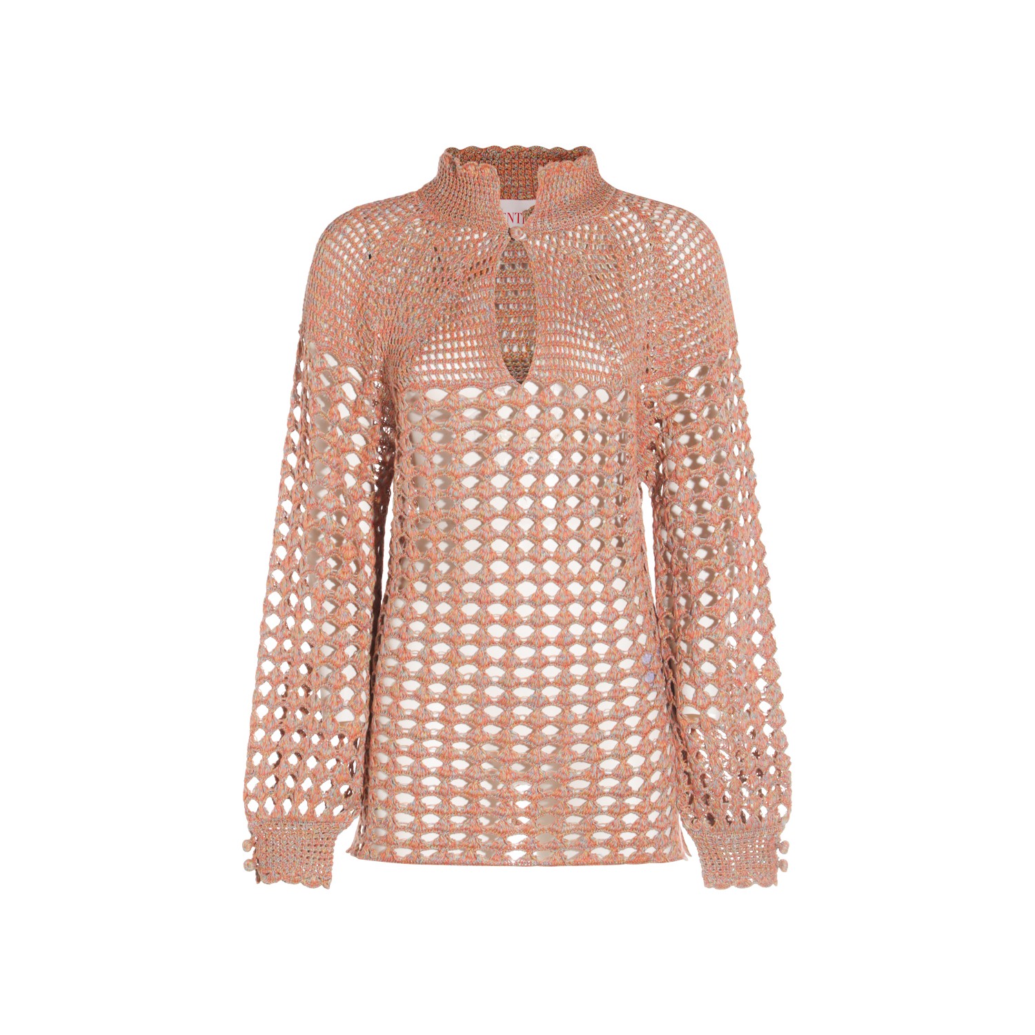 Ocra linen top from Valentino featuring long sleevesm high collar, all over hole and regular vestibility.
