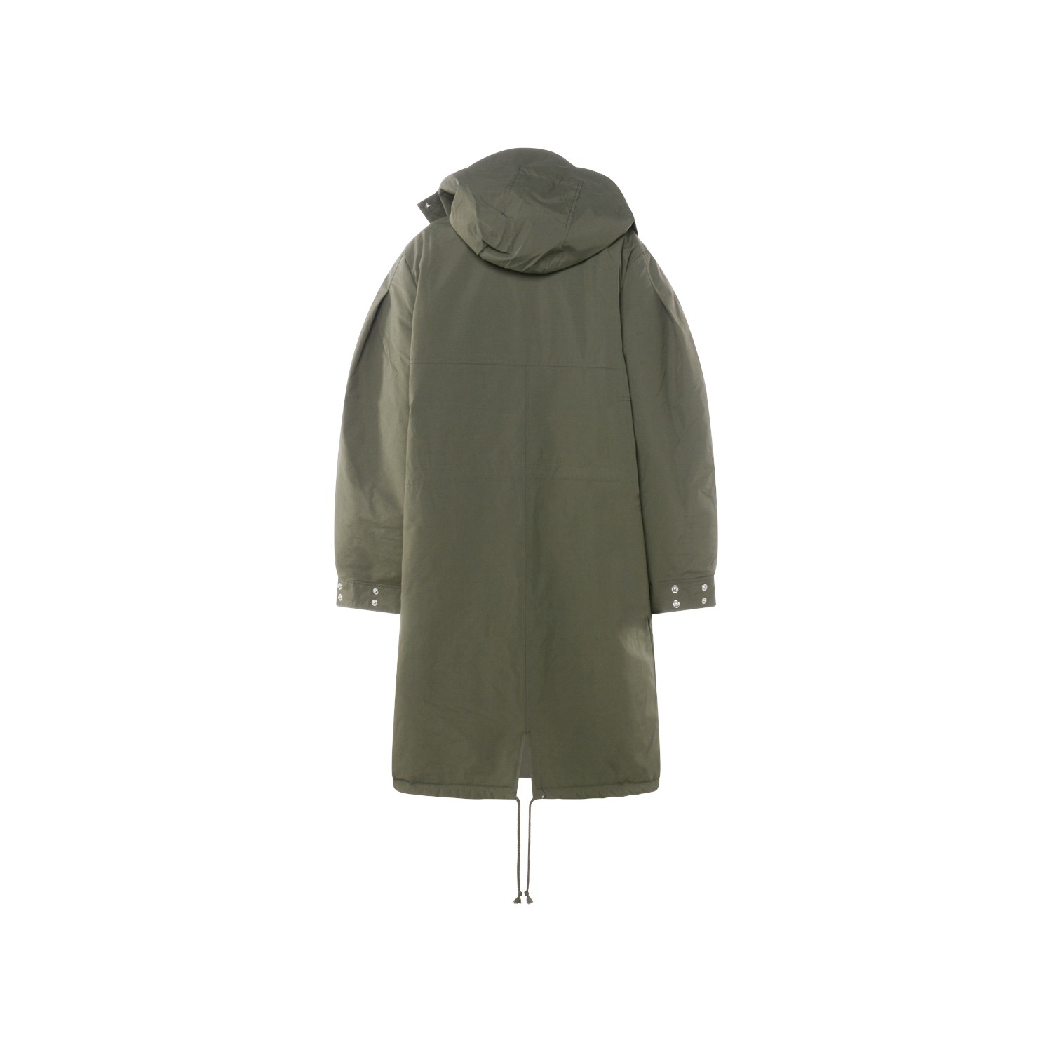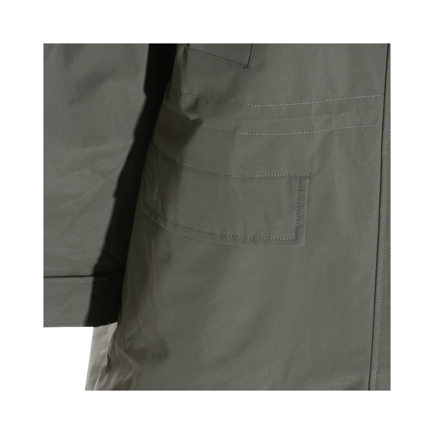 Green down jacket from Ganni featuring long sleeves, high collar, hood, logo patch and regular vestibility.
