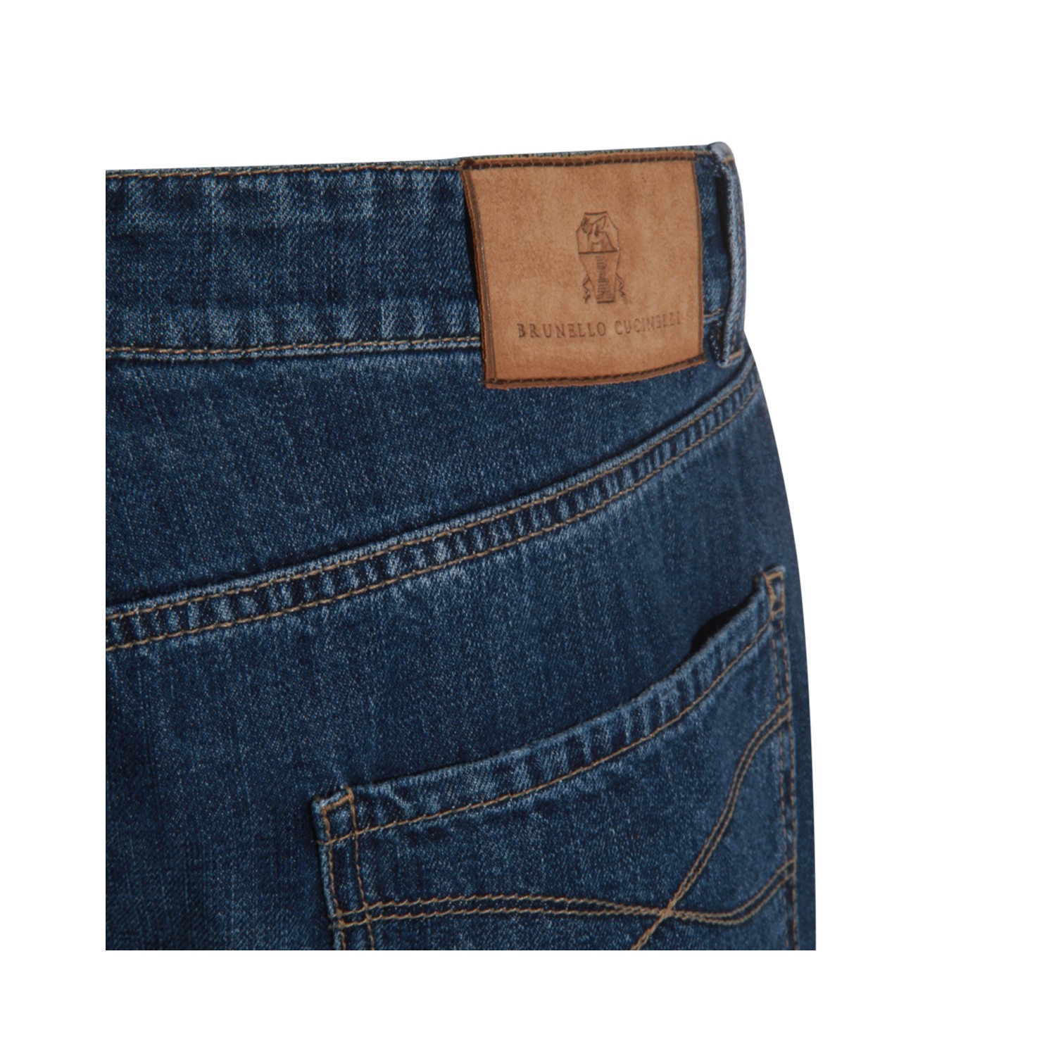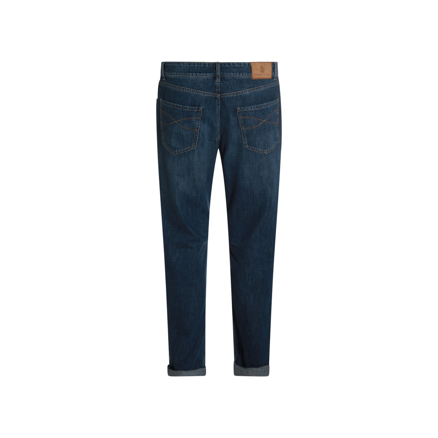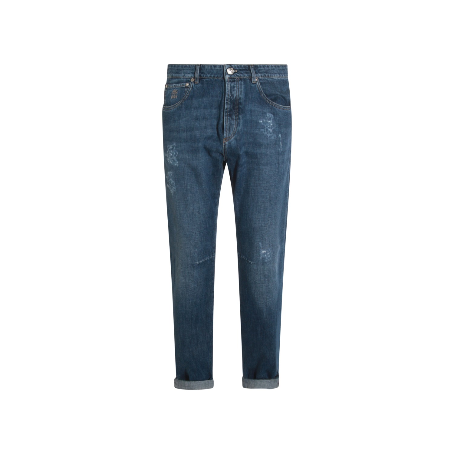 Blue cotton jeans from Brunello Cucinelli featuring frontal fastening, belt loops, pockets and regular vestibility.