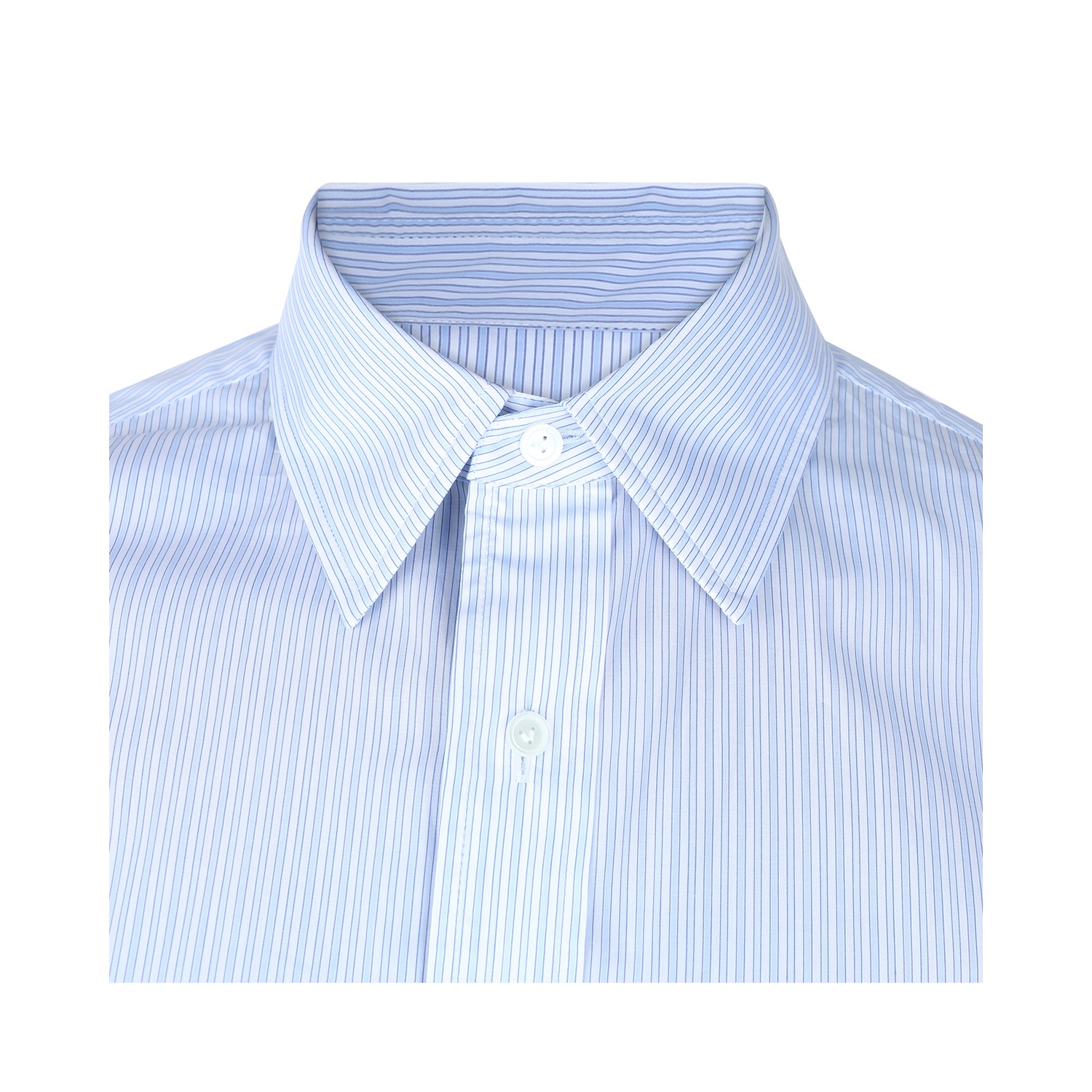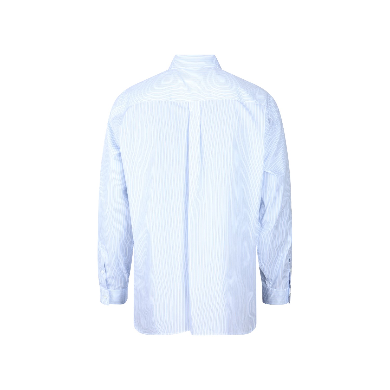 White and blue cotton shirt from Bottega Veneta featuring shirt collar, long sleeves, frontal buttons fastening, chest pocket, embroidered patch and regular vestibility.