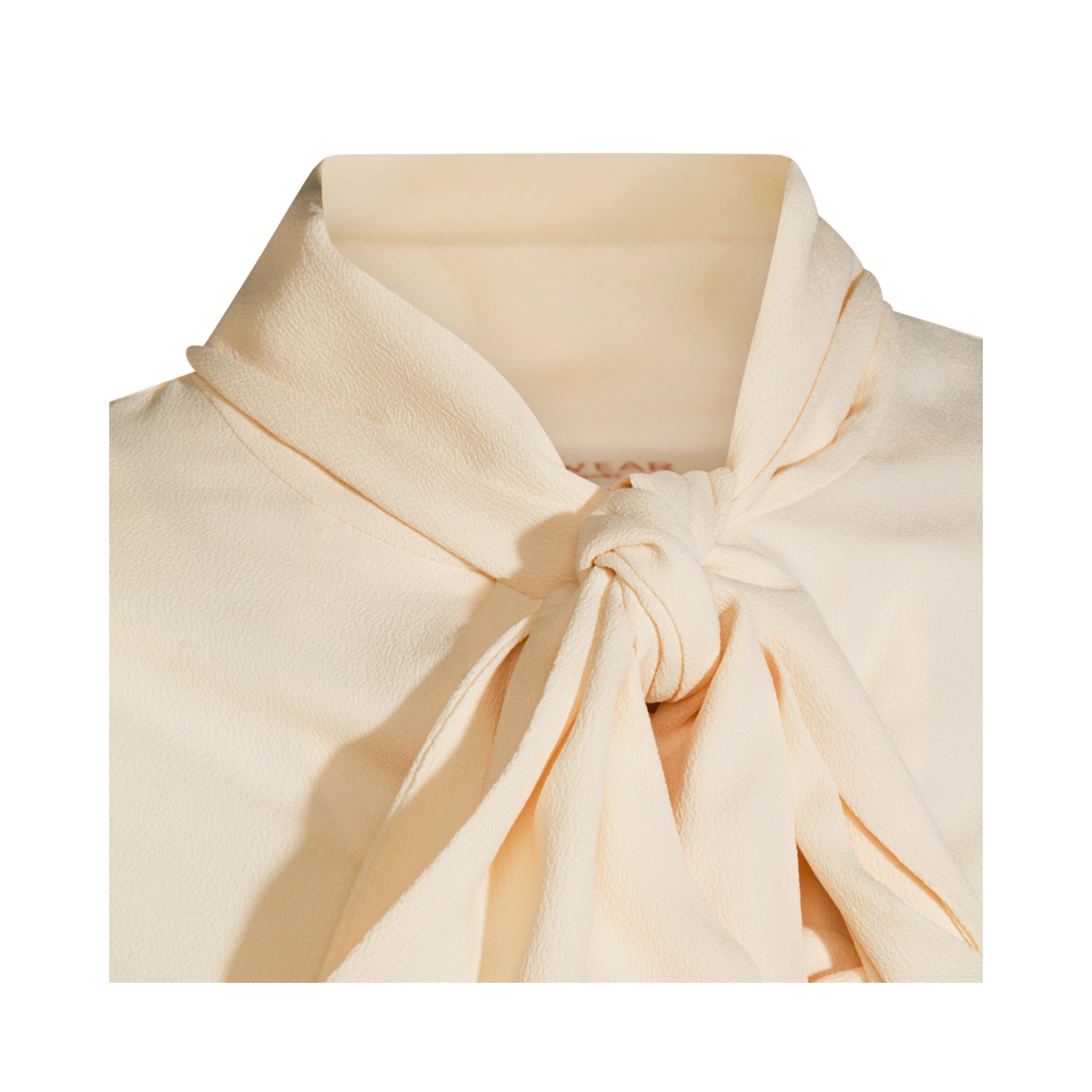 Cream shirt from Glanshirt featuring long sleeves, bow around the neck, buttoned cuffs and regular vestibility.