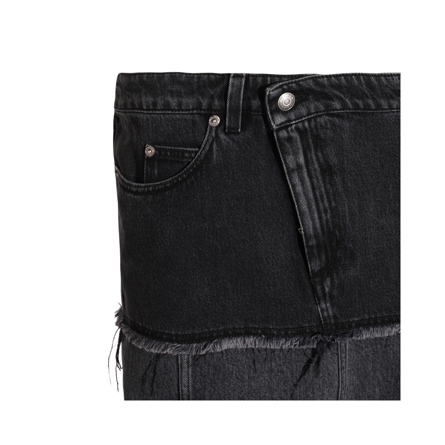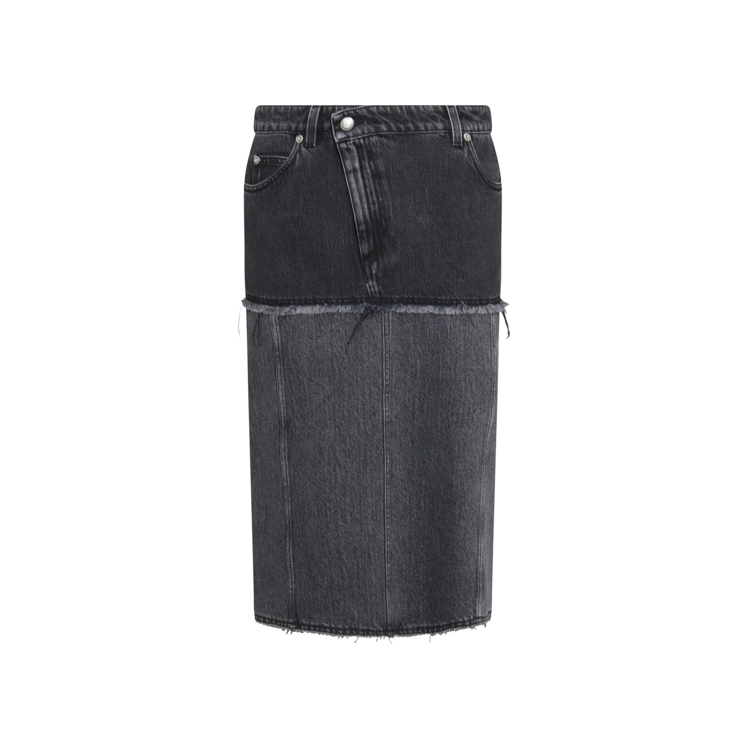 Black cotton skirt from Alexander McQueen featuring frontal zip and button fastening, denim, belt loops and midi length.