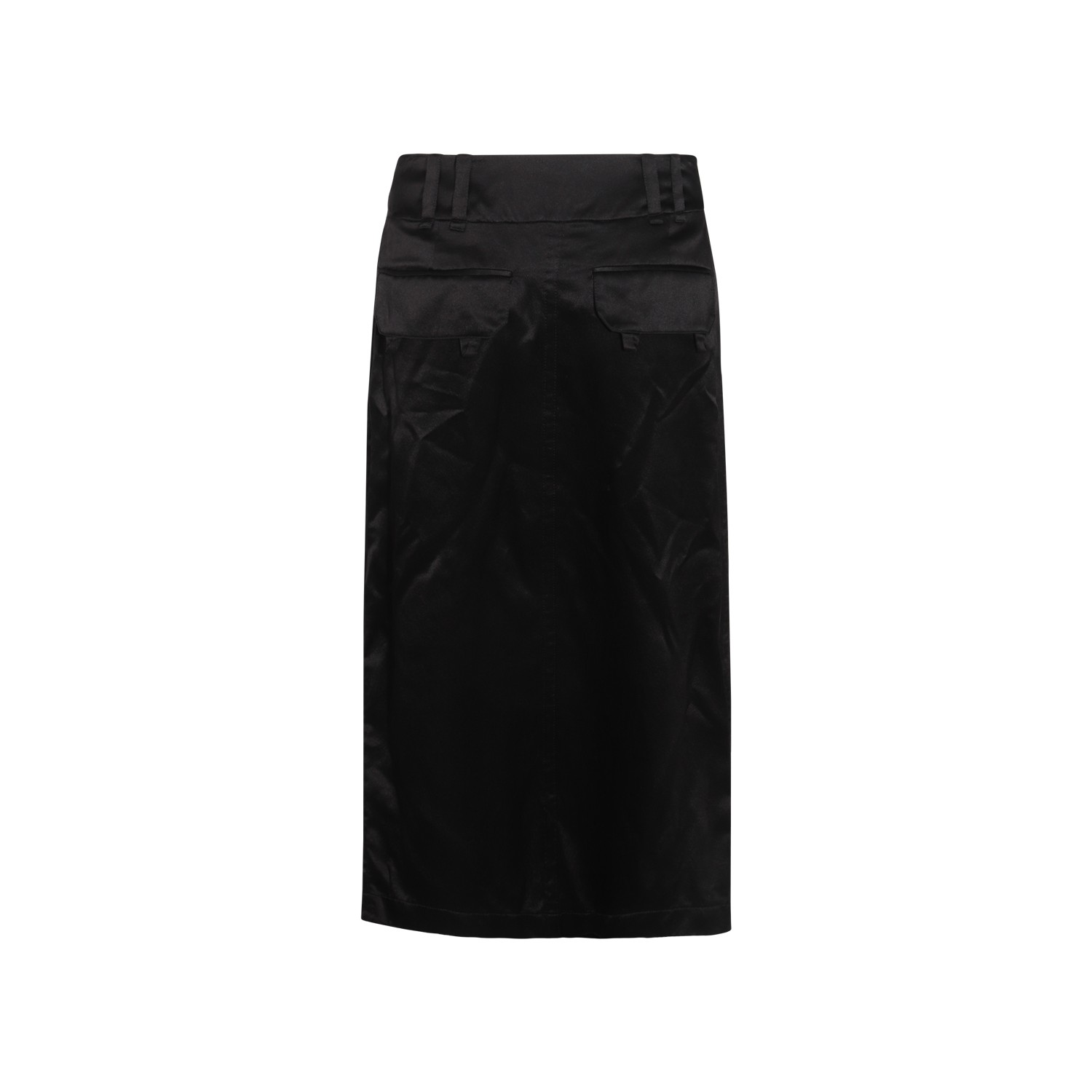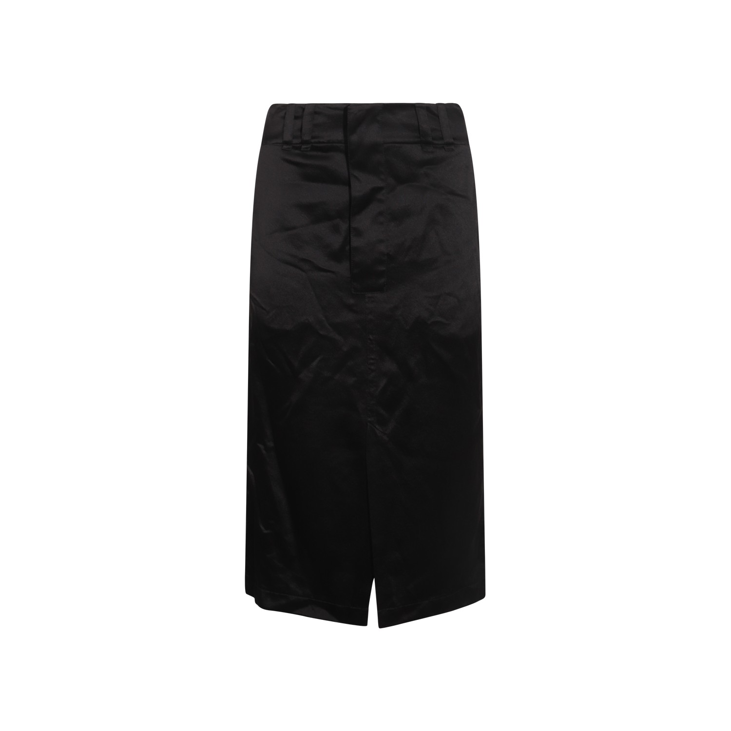 Black silk skirt from Saint Laurent featuring frontal fastening, belt loops and midi length.