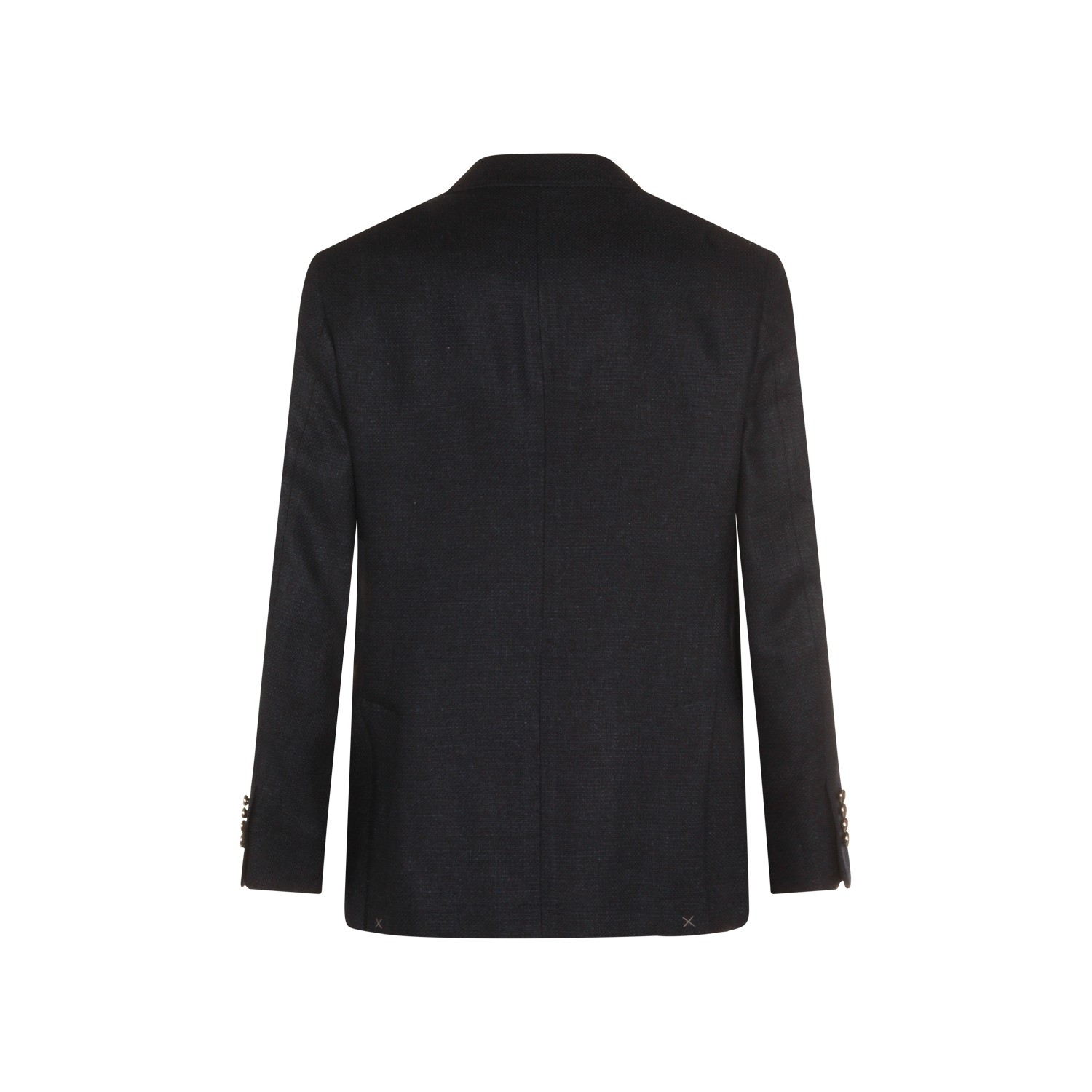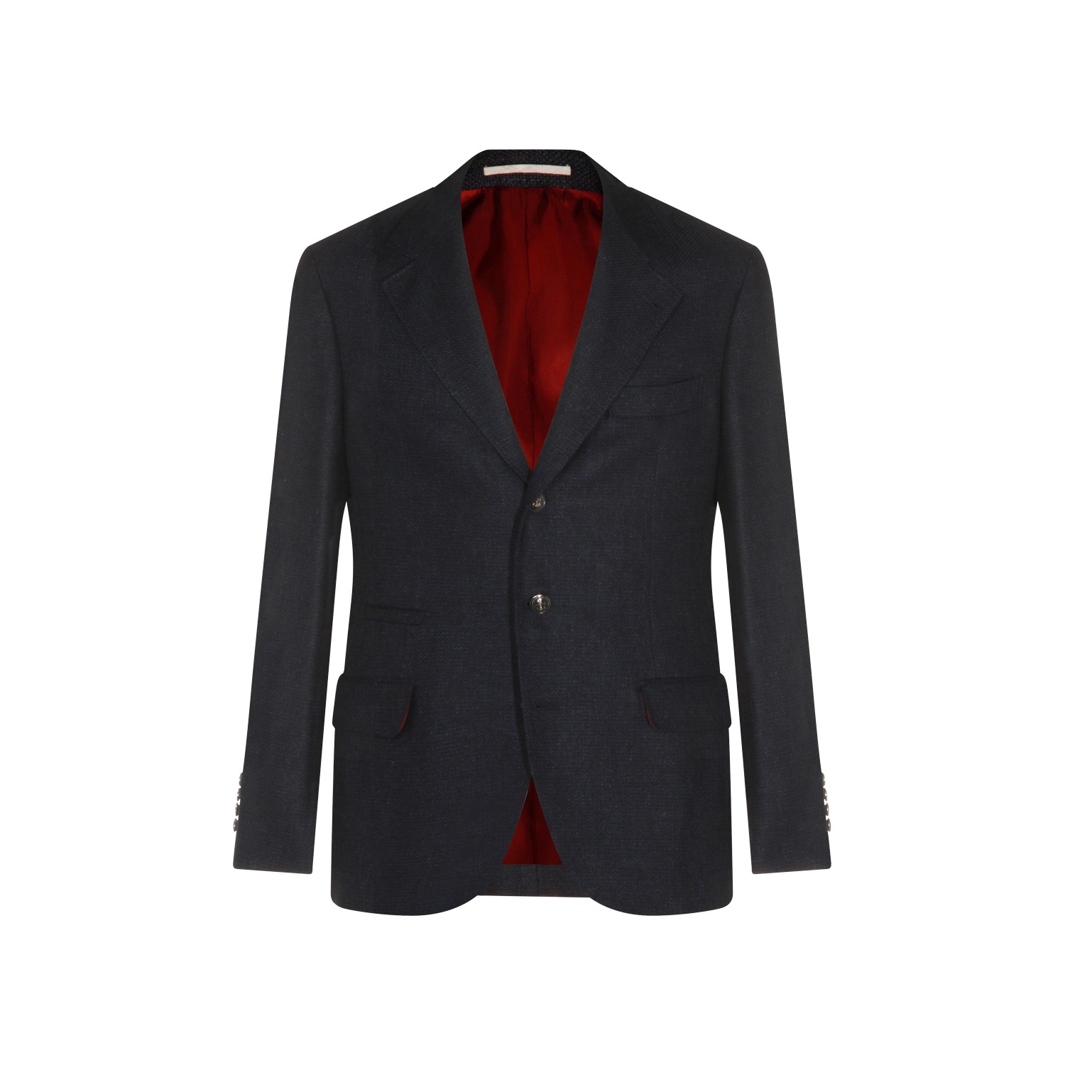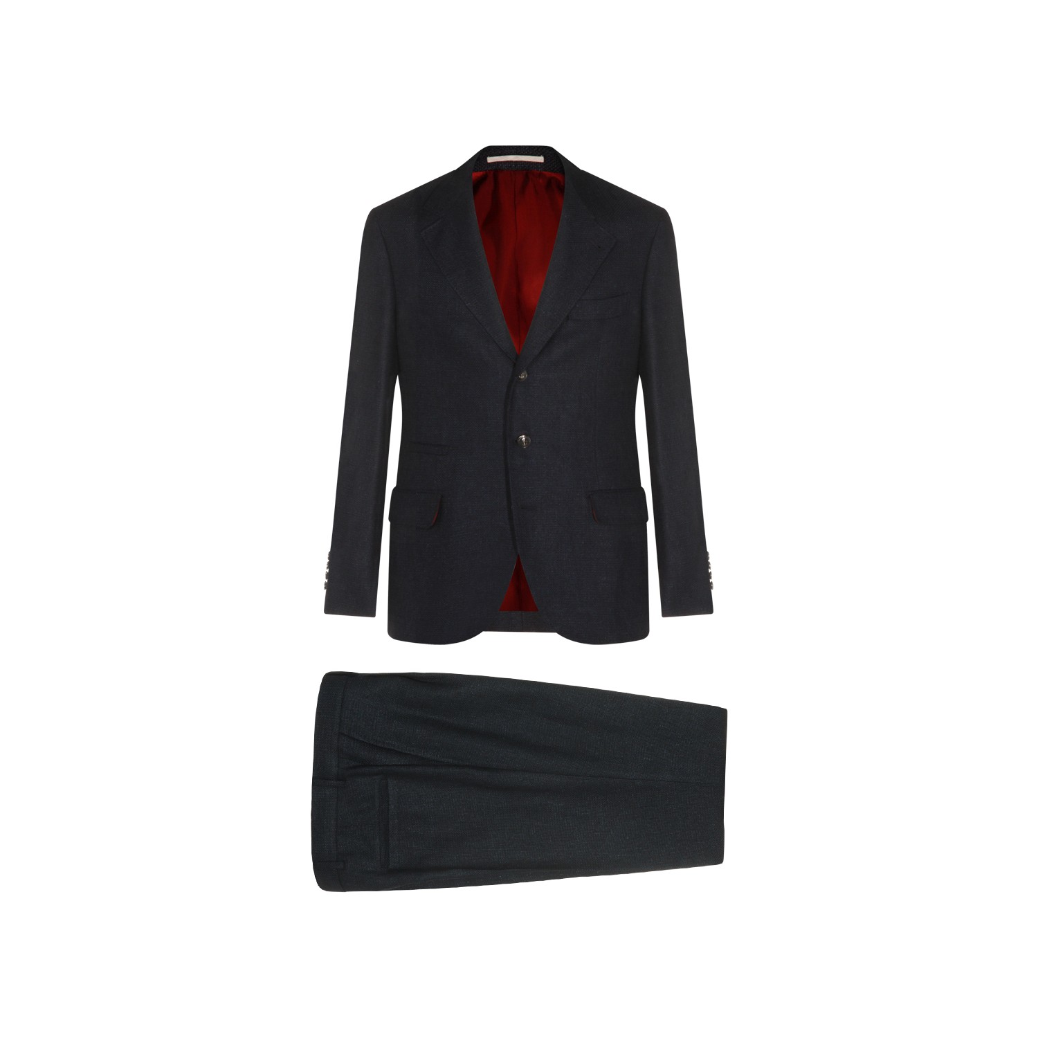 Blue silk suit from Brunello Cucinelli featuring lapel collar, long sleevesm buttons fastening and pant with zip and hook closure, welt pockets and staright leg.