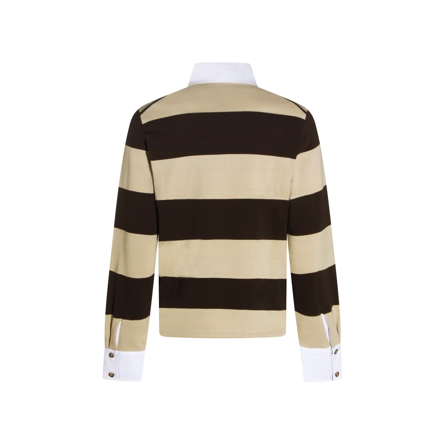 Beige and brown cotton polo shirt from Vivienne Westwood featuring polo shirt collar, long sleeves, embroidery, striped motif and regular fit.