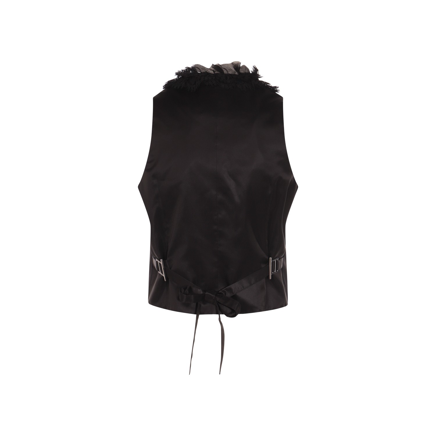 Black wool top from McQueen featuring square collar, sleeveless, double breasted and regular vestibility.