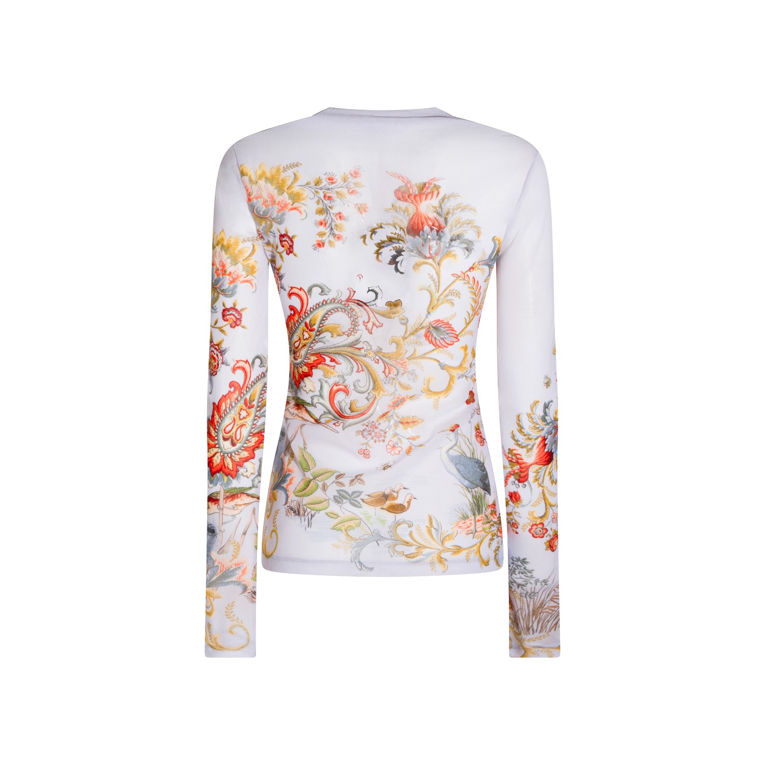 White top from Etro featuring long sleeves, round collar and print.