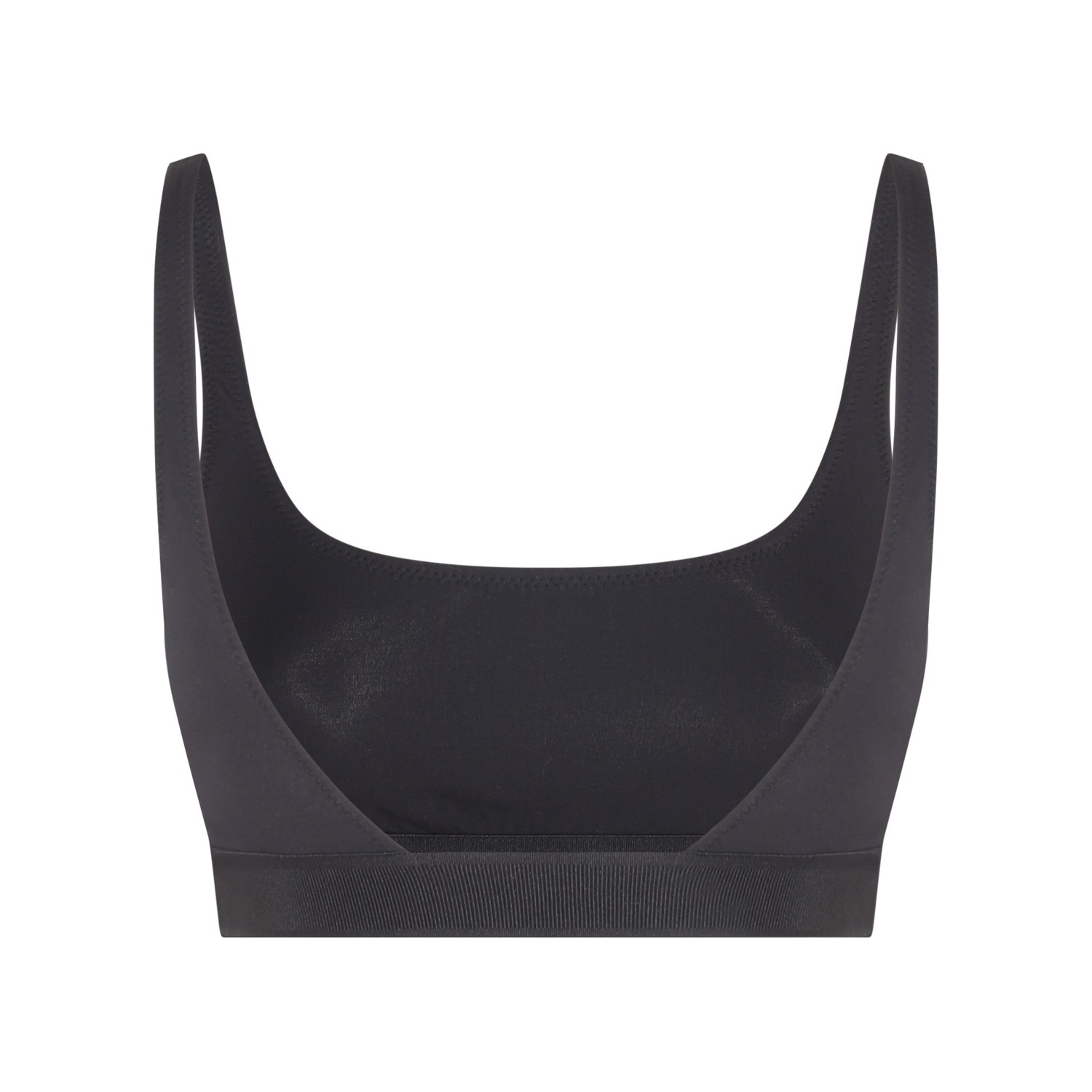 Black modal top from Tom Ford featuring wide neckline, shoulder straps and elastic waistband with logo.