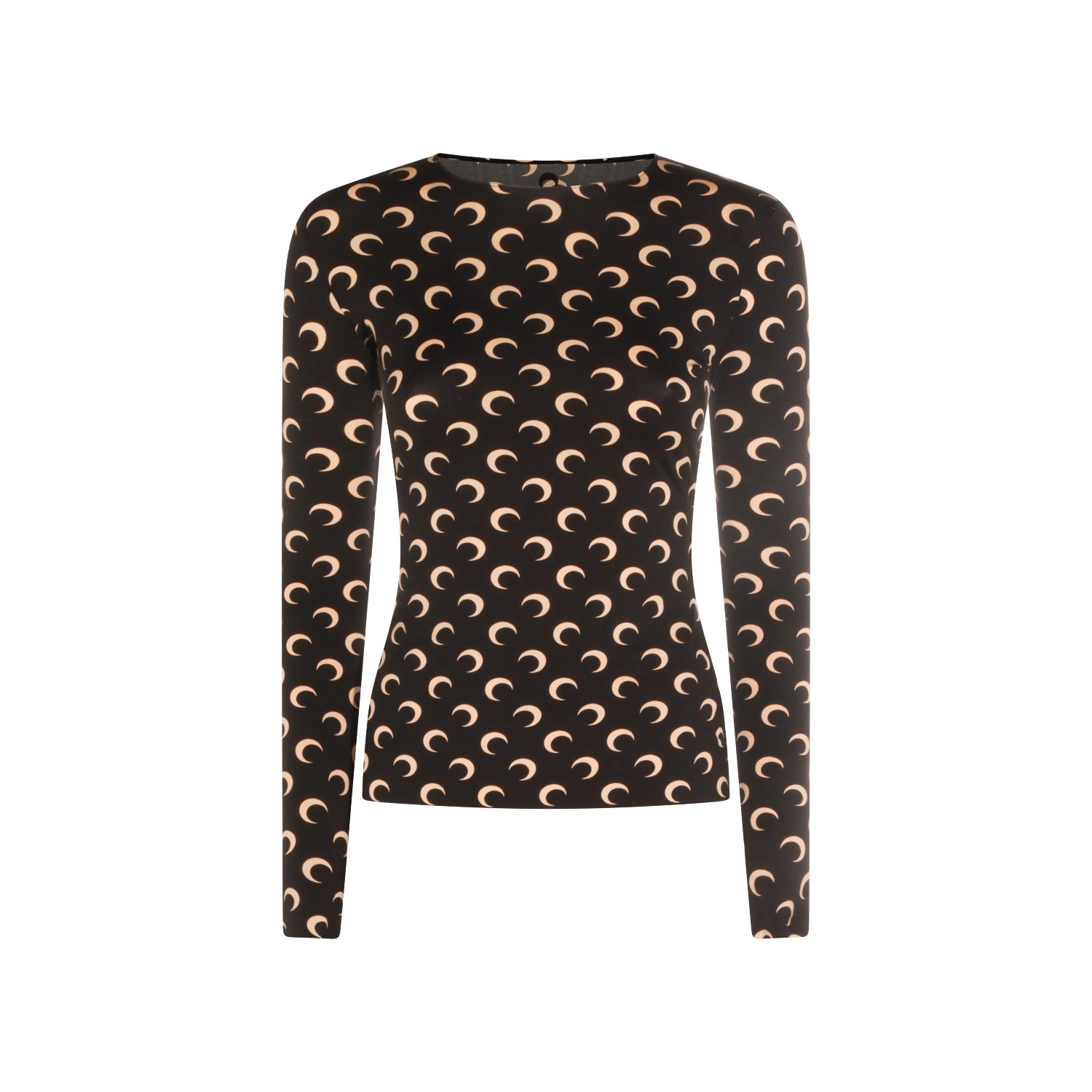 Black top from Marine Serre featuring crew neckline, long sleeves, all-over Moon print and regular fit.