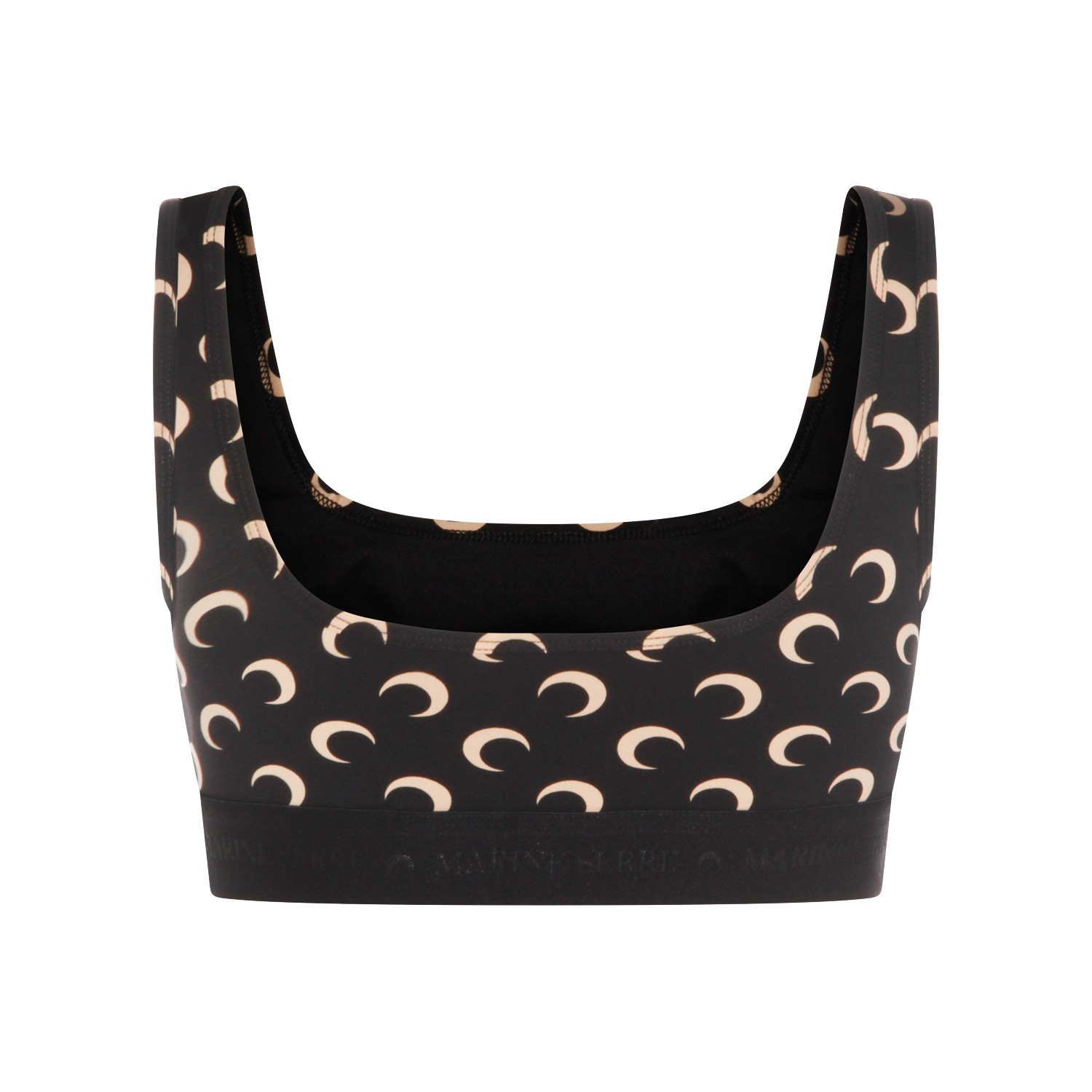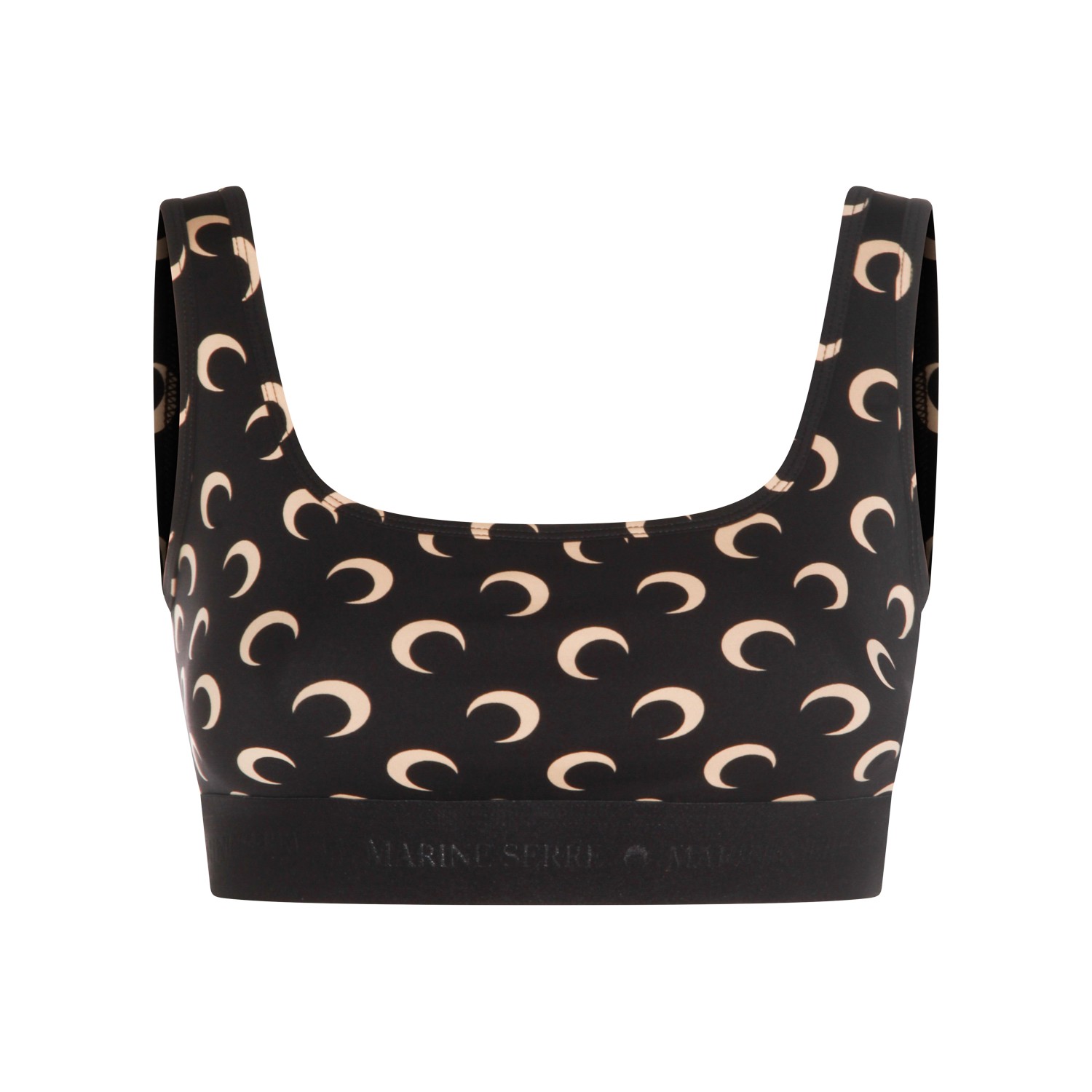 Black top from Marine Serre featuring round collar, sleeveless, all-over Moon print and elasticated vestibility.