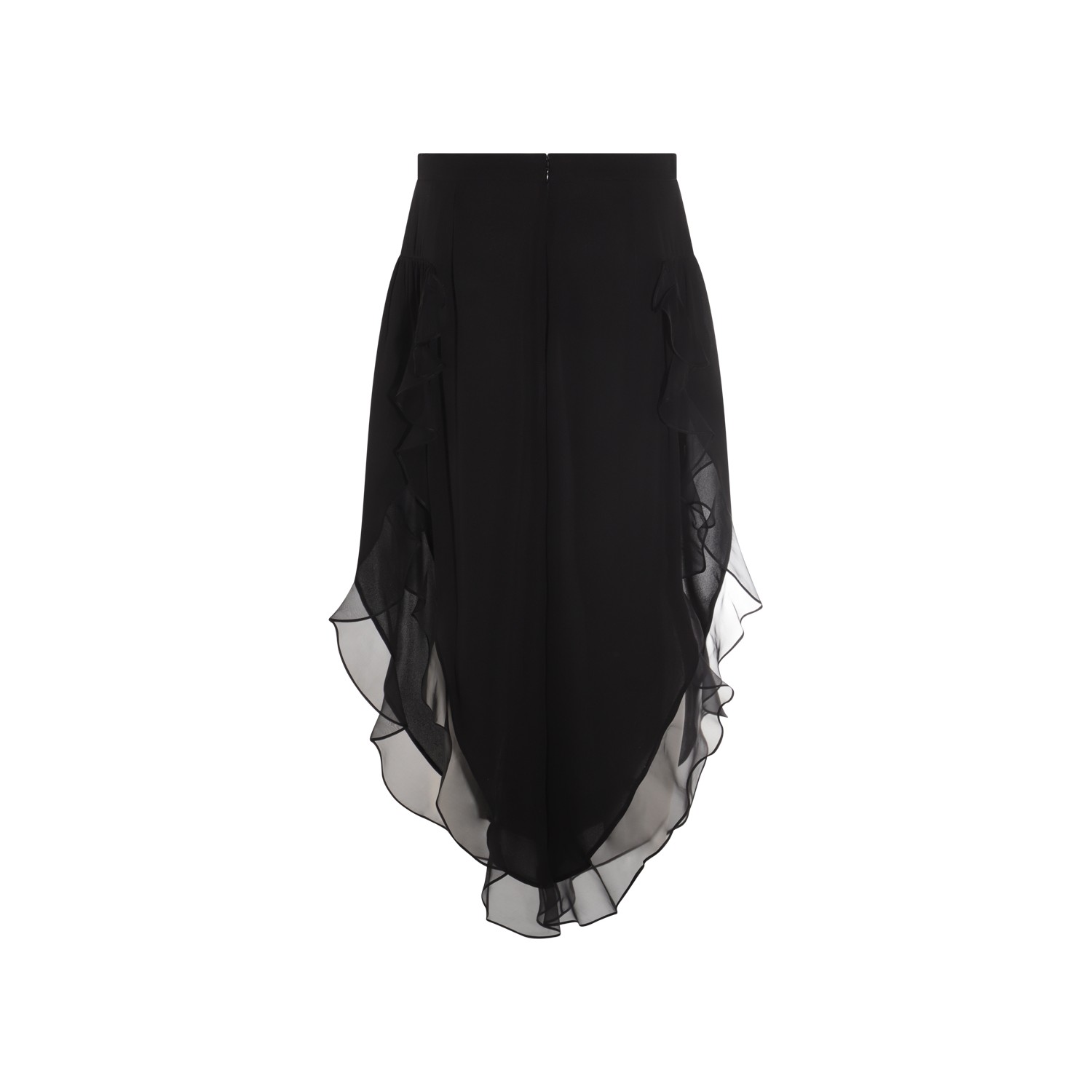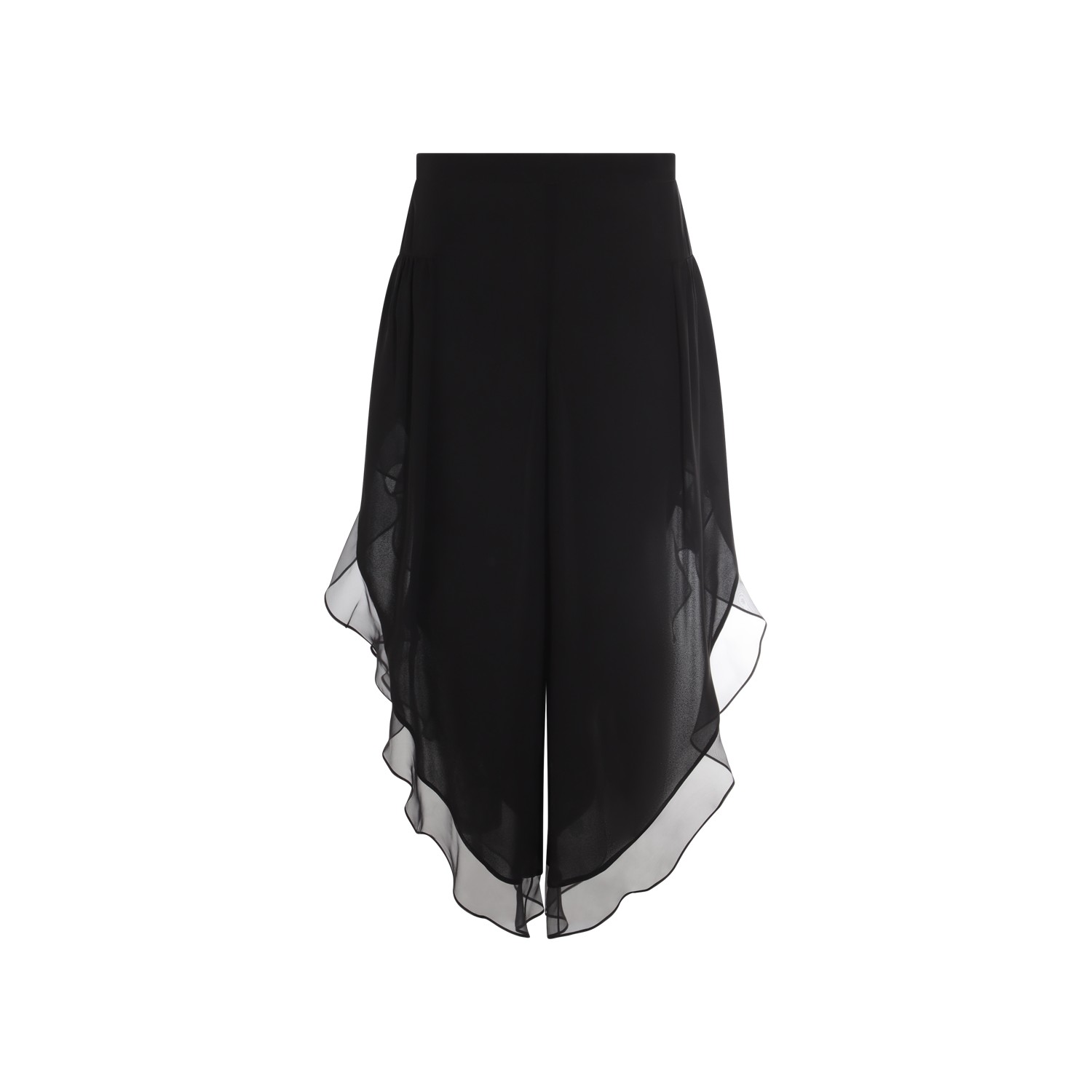 Black silk pants from Valetino Garavani featuring zip lateral fastening, midi length and rouches.