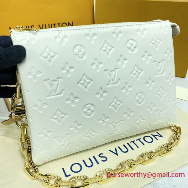 One of the stars of the Spring-Summer 2021 show, the Coussin PM handbag is made from Monogram-embossed puffy lambskin. It can be worn cross-body with the strap, as a chain baguette, or comfortably carried under the arm. The pillow-like Coussin bag brings style to the most simple look, giving it an effortless fashion-forward allure.
