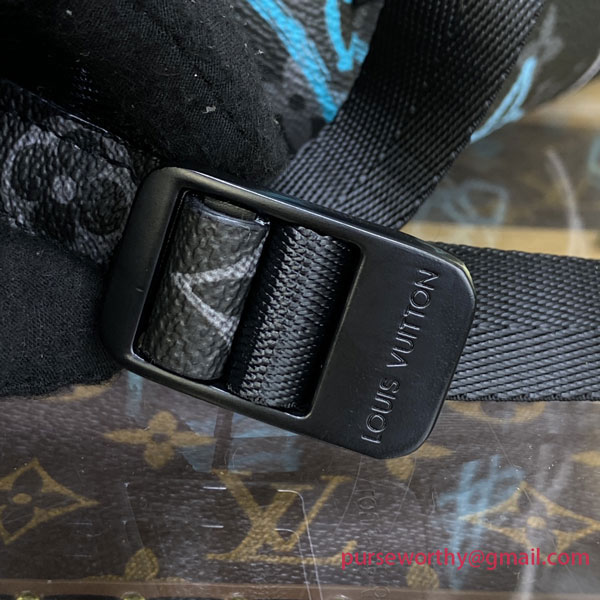 The practical Discovery Backpack takes on streetwear allure in Monogram Eclipse canvas with the LVs and Monogram rendered in a graffiti style. The Discovery features exterior pockets for easy access to essentials and a practical hook-and-eye drawstring closure. The comfortable leather straps and top handle enable a variety of carry styles.