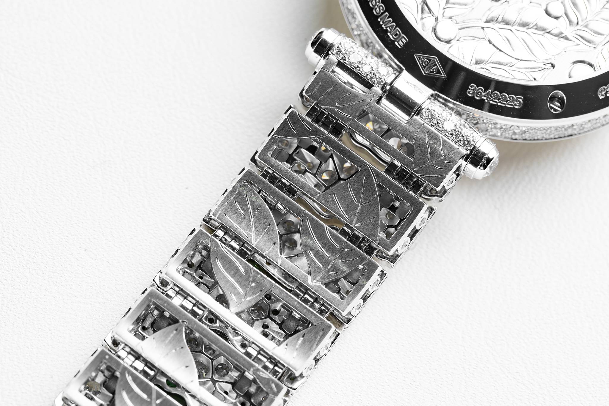 The white gold caseback reveals engravings with motifs taken from the watch dial. Having a 40-hour power reserve, the Lady Jour des Fleurs is powered by a hand-wound mechanical movement.