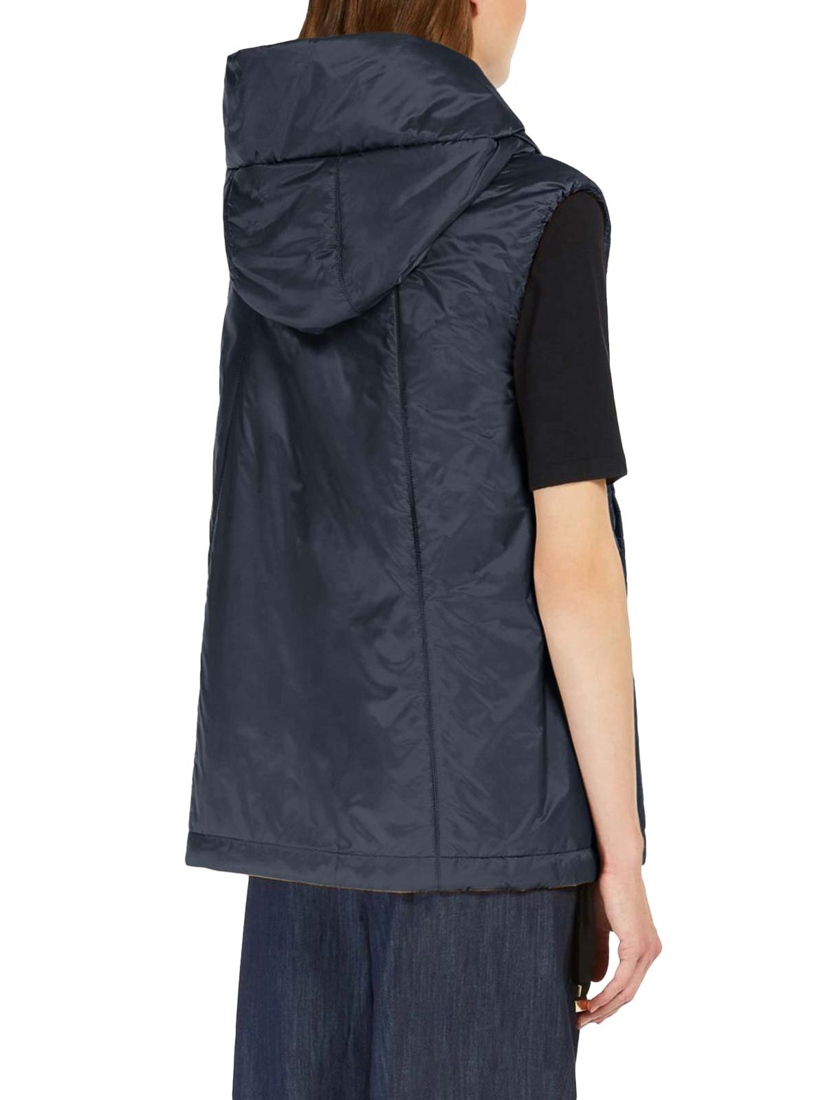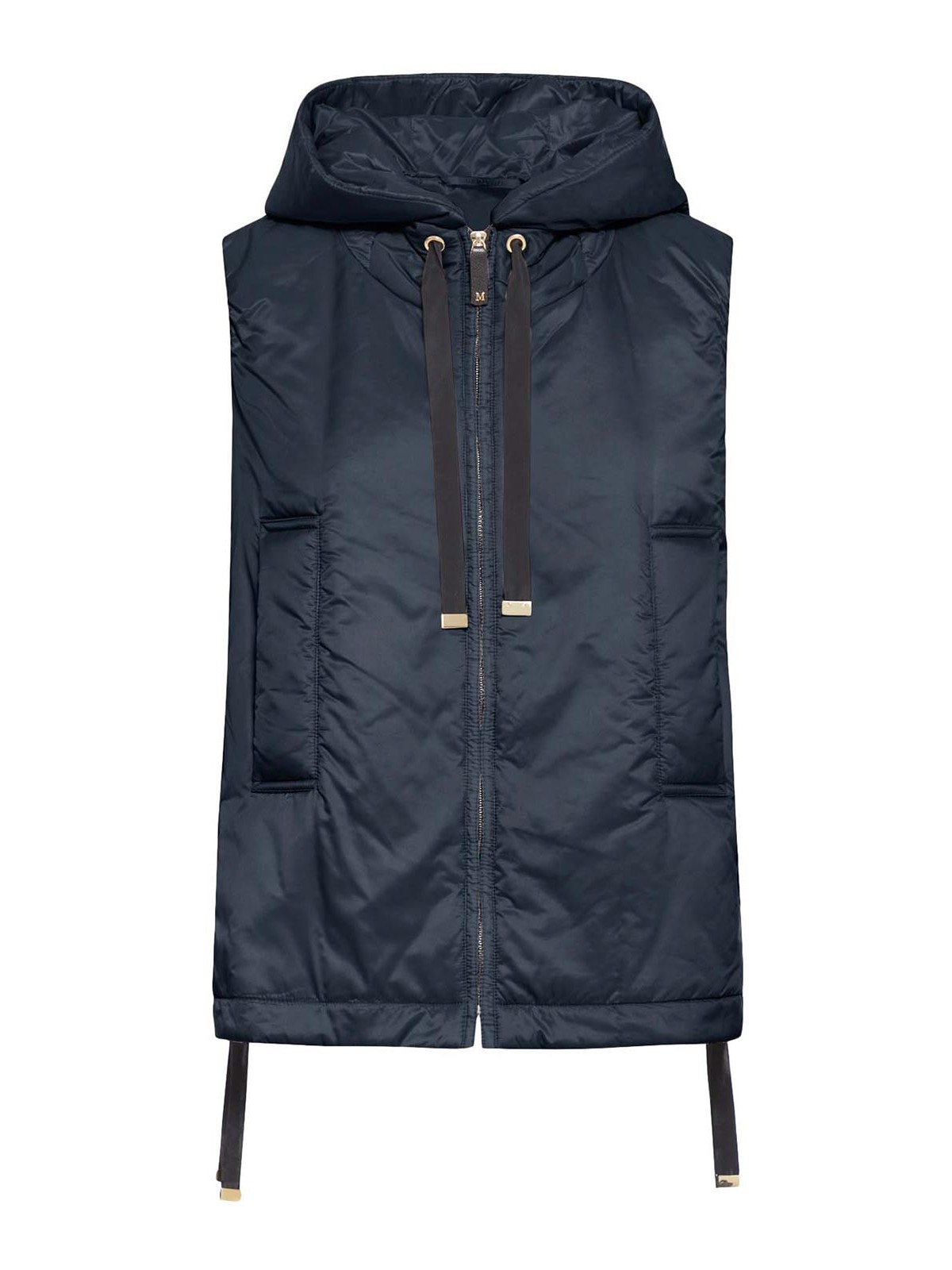 kurze Weste, Kapuze und Saum mit Kordelzug, Cameluxe-Wattierung, wasserabweisendes Canvas, leicht ausgestellte Passform, Frontreißverschluss mit Lederzieher und Metallmonogramm, Leistentaschen an den Seiten, das Model trägt Größe 40 (it) und ist 178 cm groß, Farbe: nachtblau