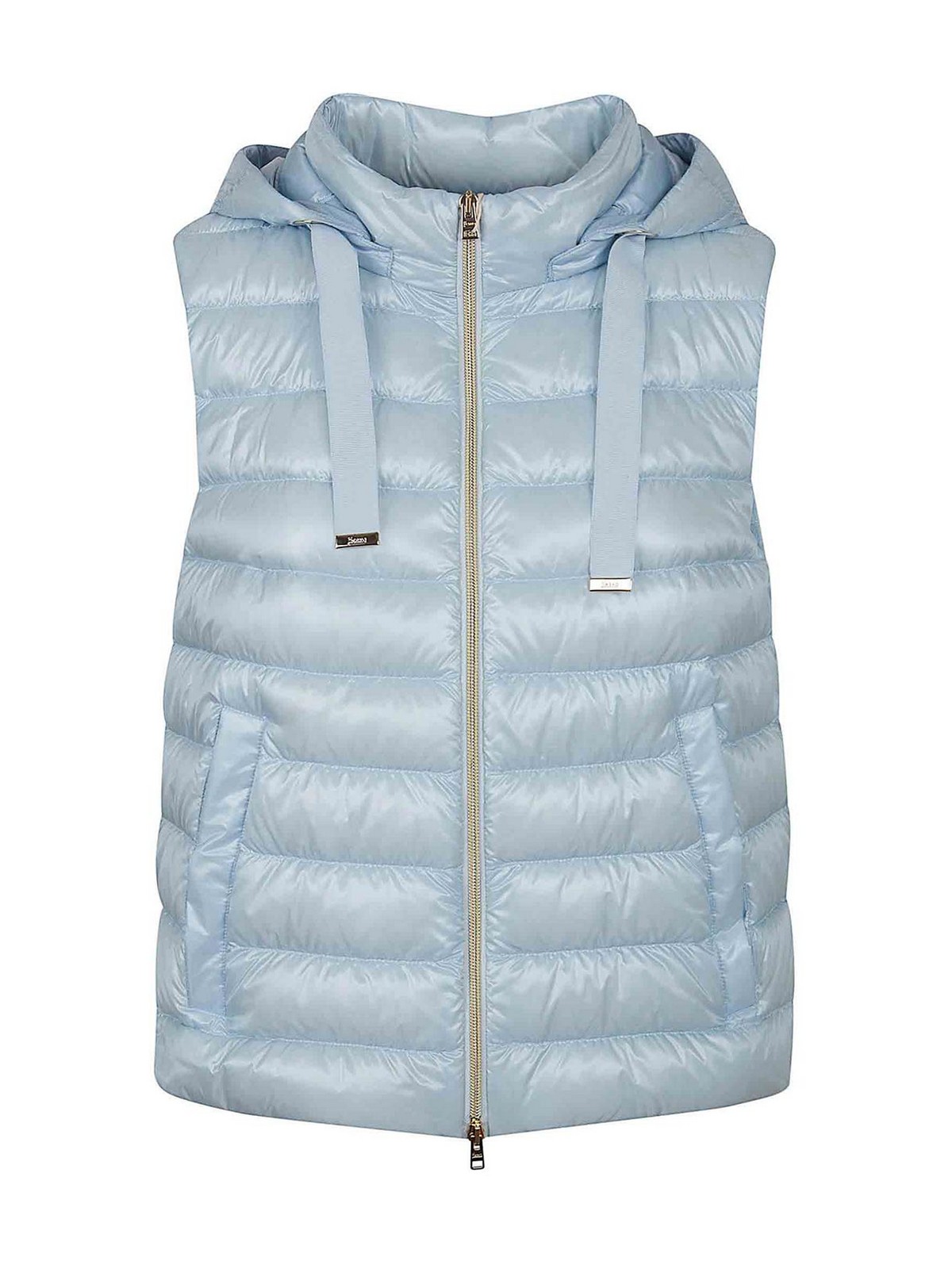Ärmellos in der ikonischen ultraleichten mit Herno gestreiften Steppung abnehmbare Kapuze Leistentaschen mit Zwei-Wege-Reißverschluss Regular-Fit-Design Herno-Metalllogo auf der Rückseite mit exklusiver Technologie, die die Wahl von japanischem Denier und eine feine/eingespritzte Daune bietet ein noch leichtes Gefühl, was zu Wasserbeständigkeit mit einem luxuriösen seidenähnlichen Haptikeffekt führt.