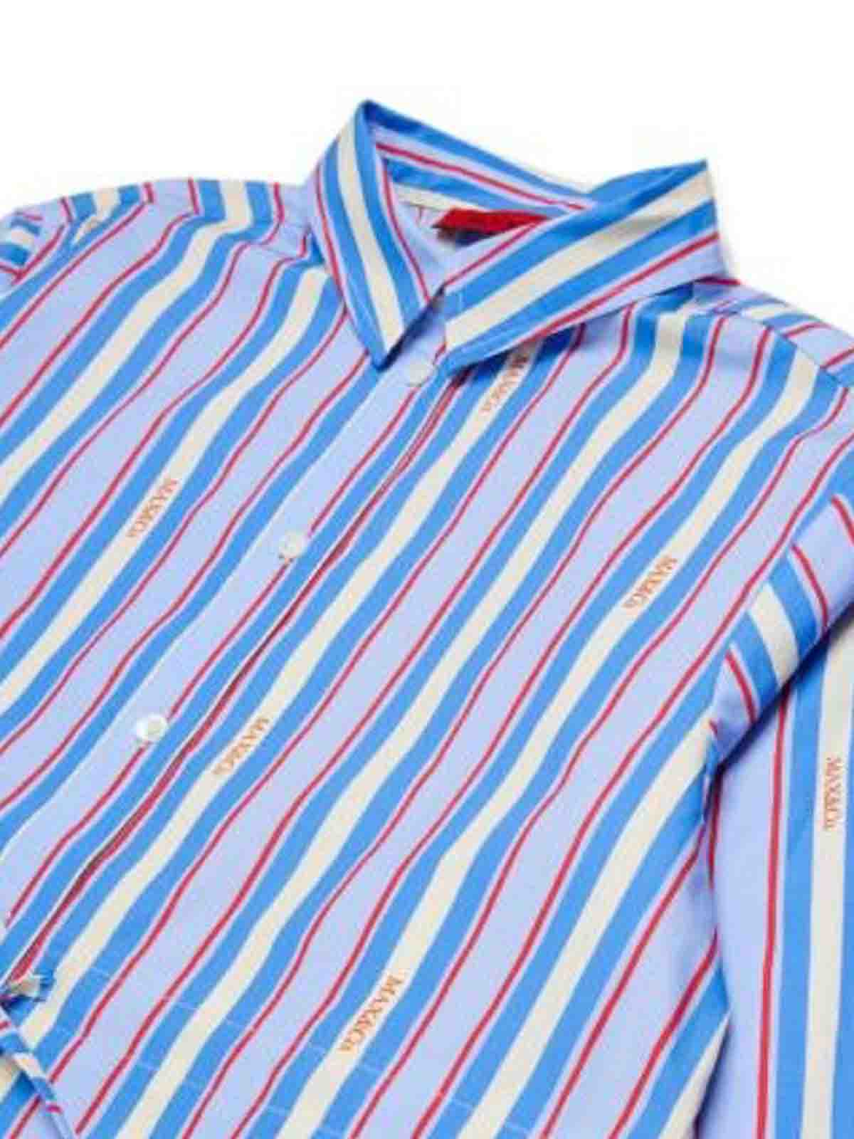 Gestreiftes Hemd mit hellblauem Streifenmotiv, klassischem Kragen, Vorderseite mit Knöpfen