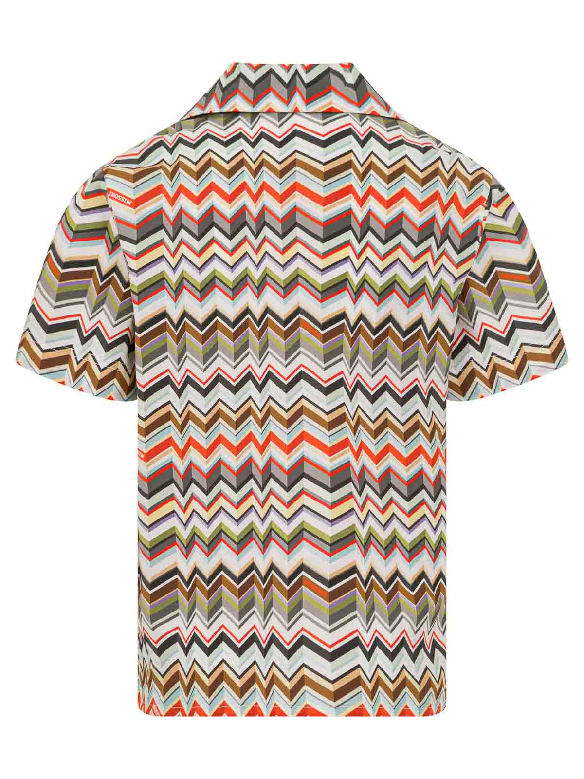 Hemd mit hellbeige/mehrfarbigem Druck, Zick-Zack-Muster, Knopfverschluss, kubanischer Kragen, kurze Ärmel