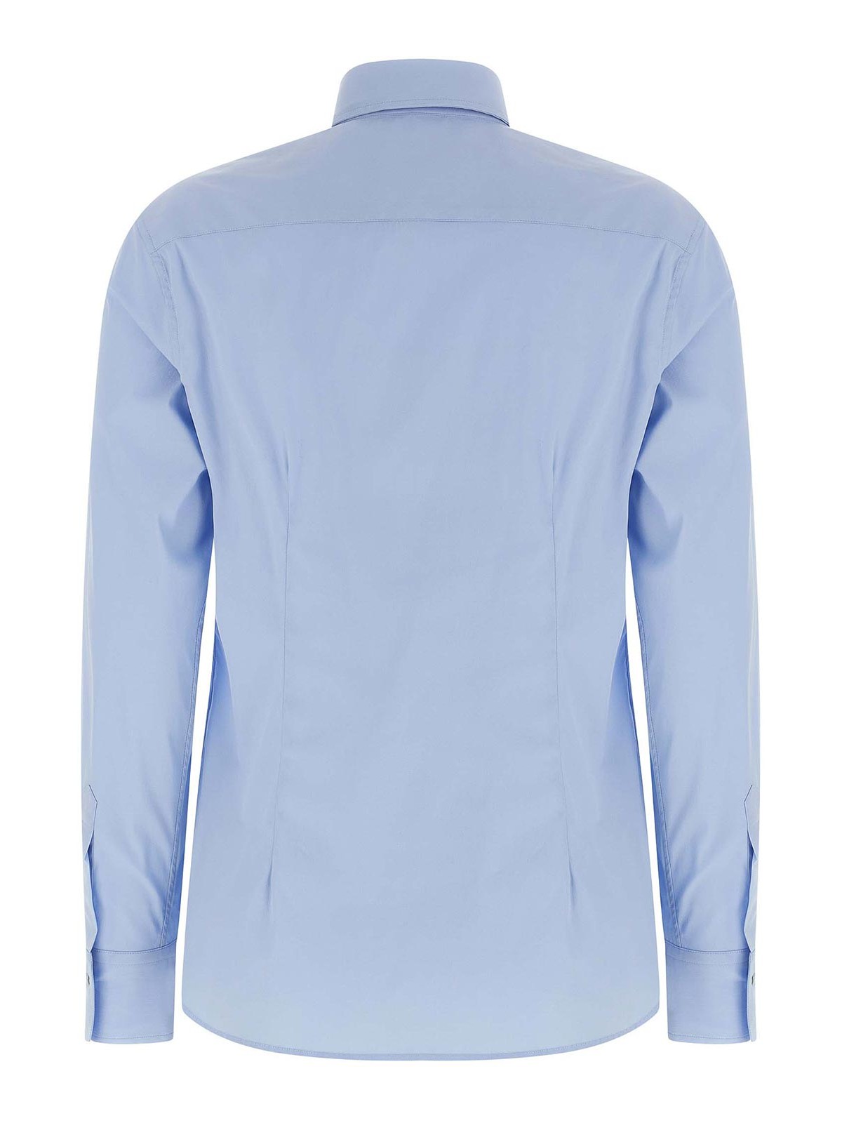 Klassisches Hemd „Sara“ aus Baumwollmischgewebe mit spitzem Kragen, leicht ausgestellter Front- und Rückenfalten, Knopfverschluss auf der Vorderseite, langen Ärmeln mit Manschetten und Knöpfen.