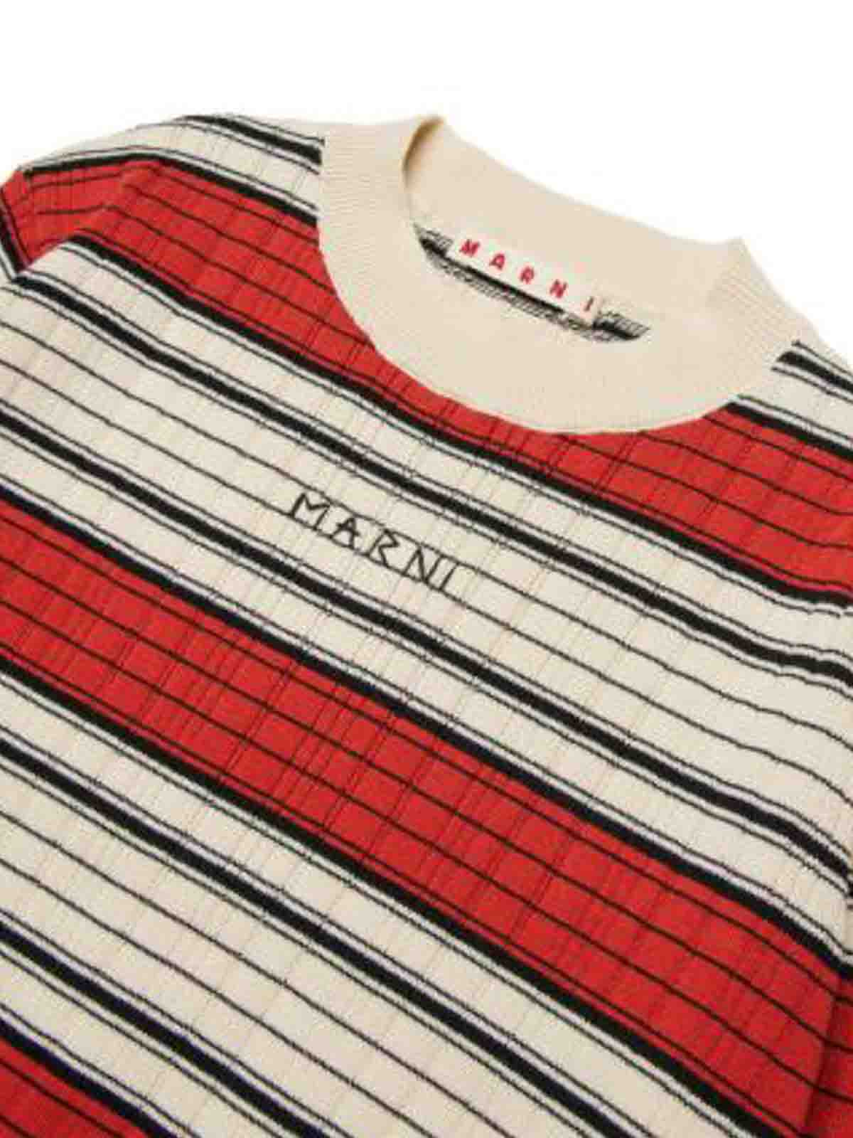 Marni: Strickpullover mit Rundhalsausschnitt - Rundhalspullover - Creme