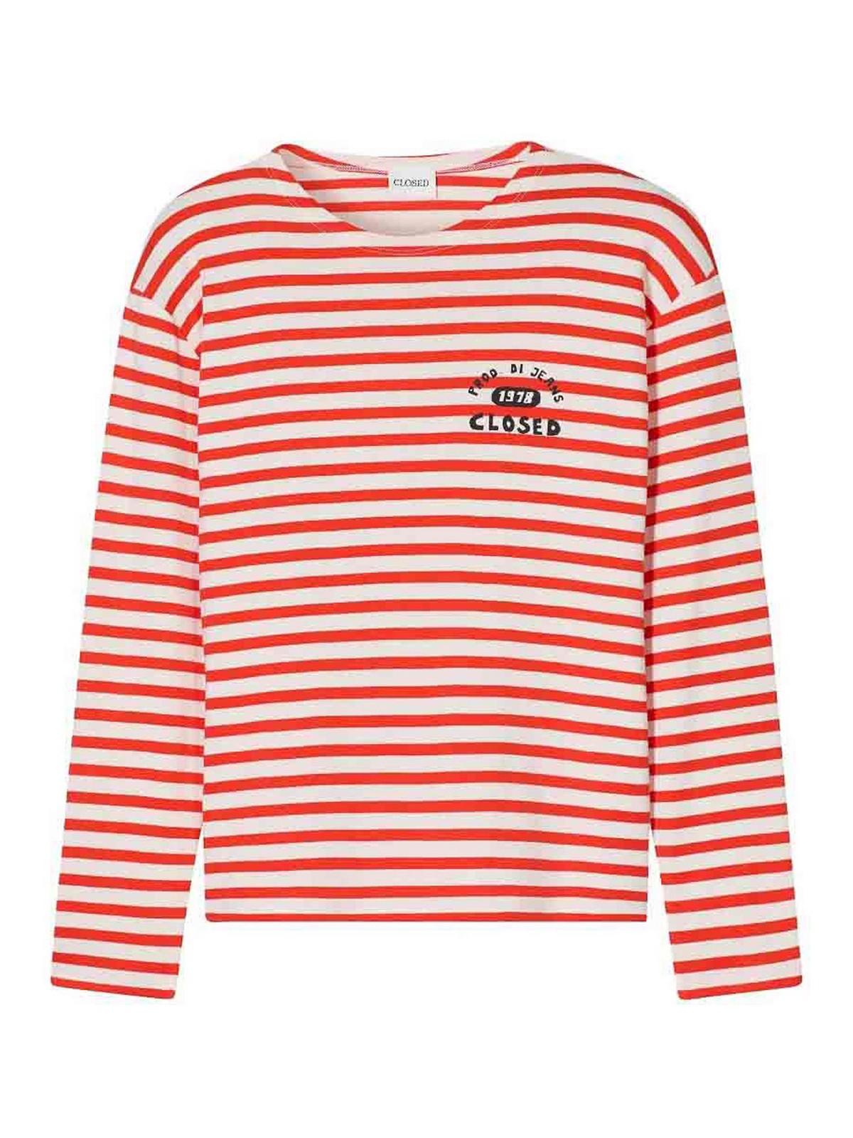 Orangeweiß gestreifte Designer-Langärmel mit Rundhalsausschnitt