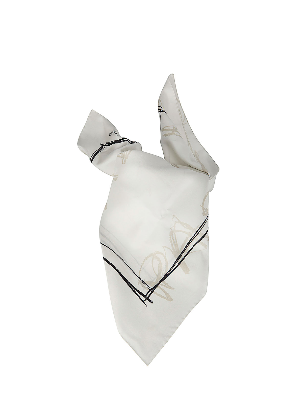 Seidentuch 90x90cm, eleganter schwarz-beiger Druck mit Zahlen und Maison Margiela-Aufschrift.