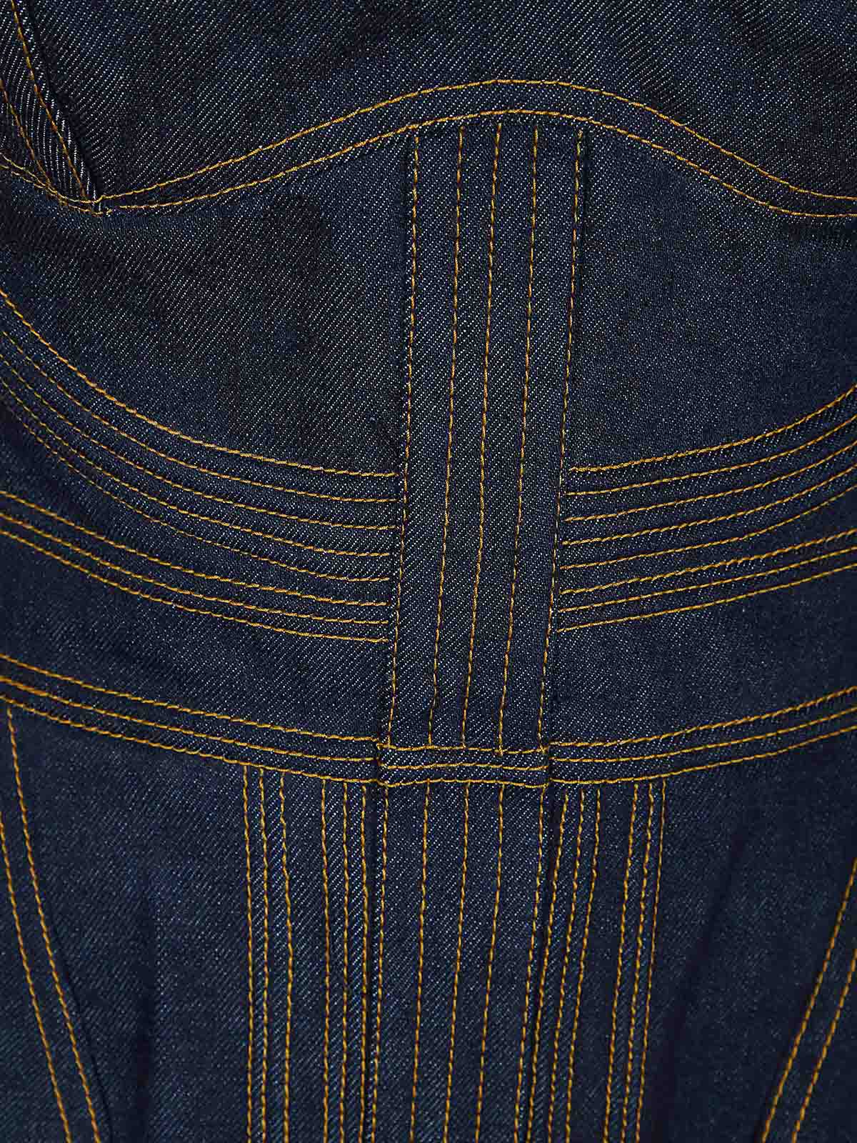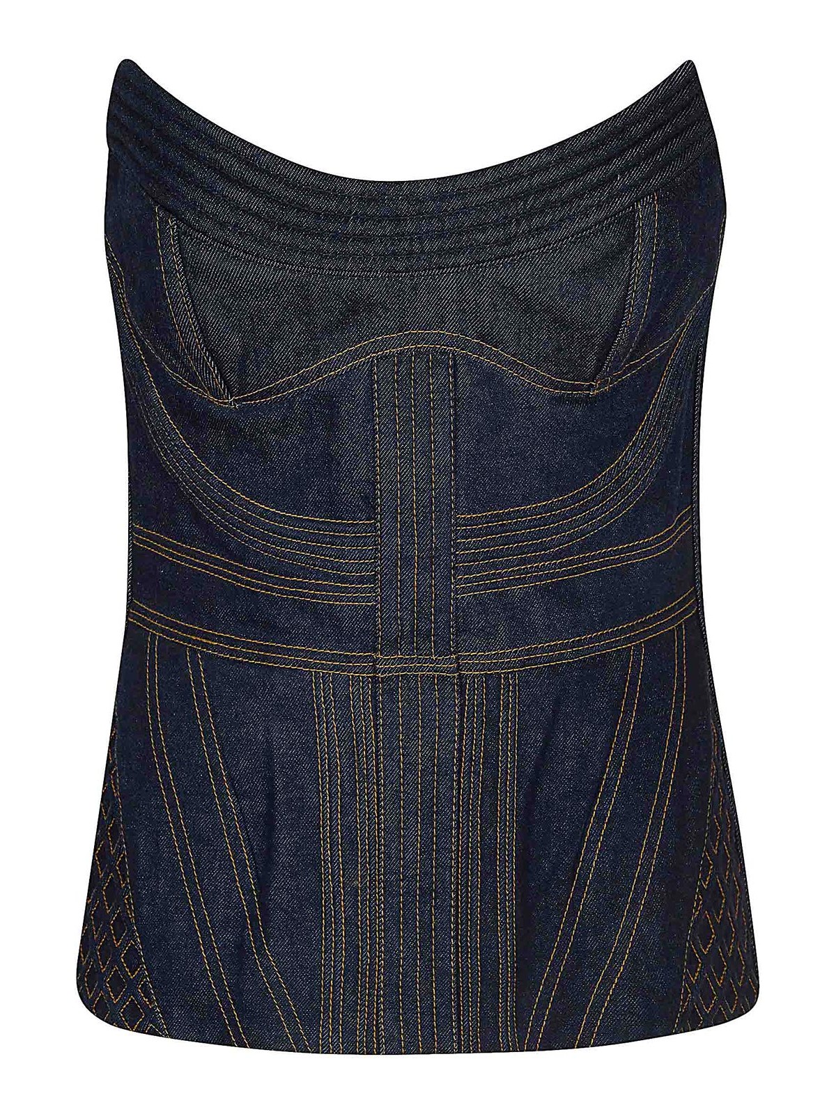 Korsett Rebellion aus Denim von Zimmermann, trägerloser V-Ausschnitt mit Reißverschluss, Rückenmitte, Körbchen mit gefütterten inneren Verstärkungen, gekennzeichnet durch sichtbare Steppnähte und geflochtene Nähte