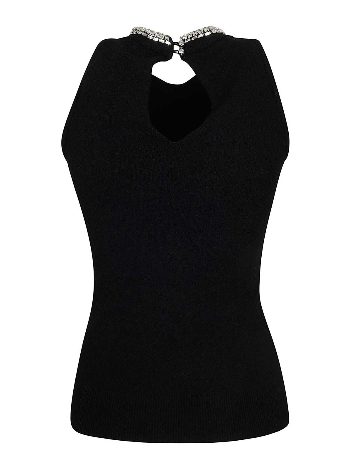 Bestickt mit ärmelloser schwarzer Schmuckapplikation mit Schlüssellochöffnung