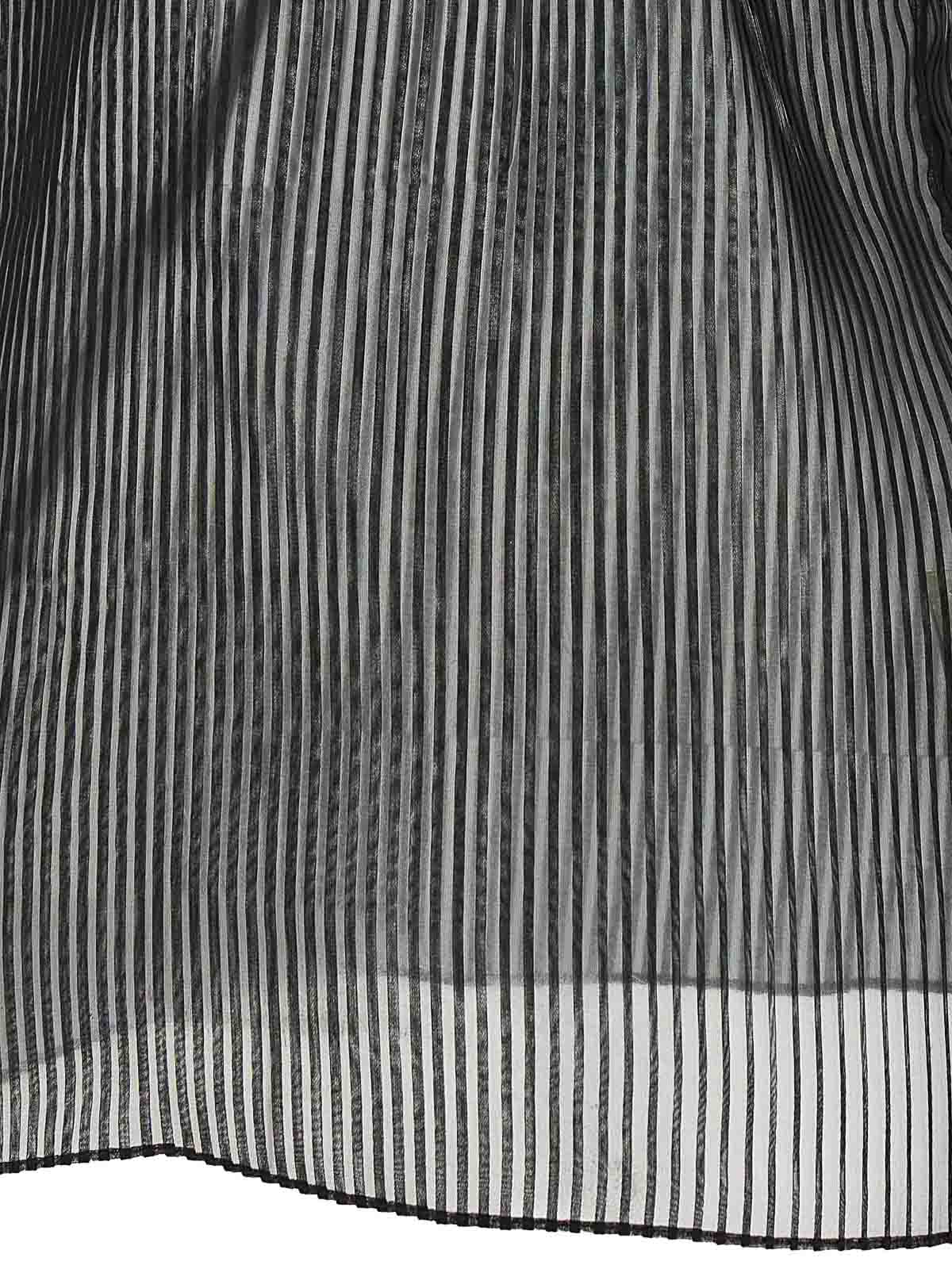 Plissiertes, halbtransparentes Chiffonoberteil mit farblich abgestimmten Satindetails, rundem Halsausschnitt mit Druckknopfverschluss auf der Rückseite und tropfenförmigen Ausschnitt sowie nudefarbenem Cupro-Inneneinsatz auf der Vorderseite.