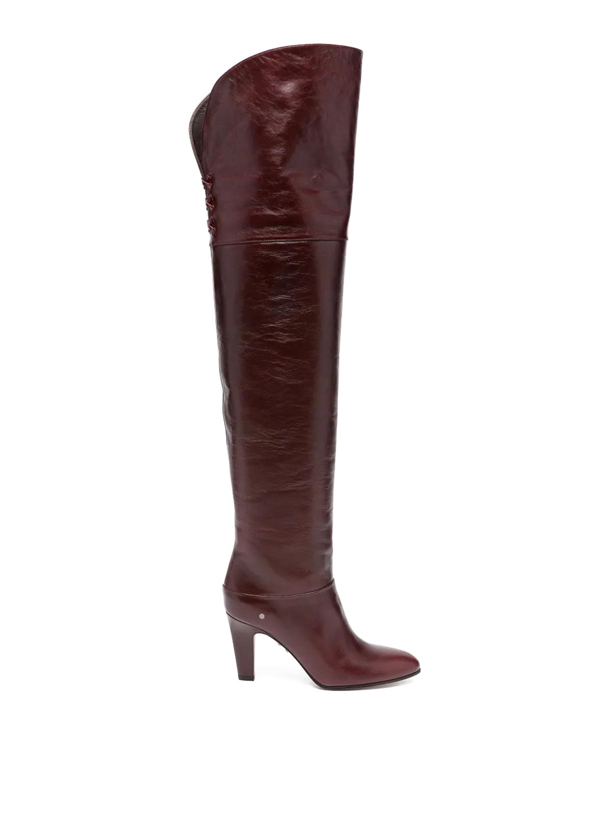 Púrpura oscuro de diseñador, punta alta en el muslo, eje alto, espalda con cordones