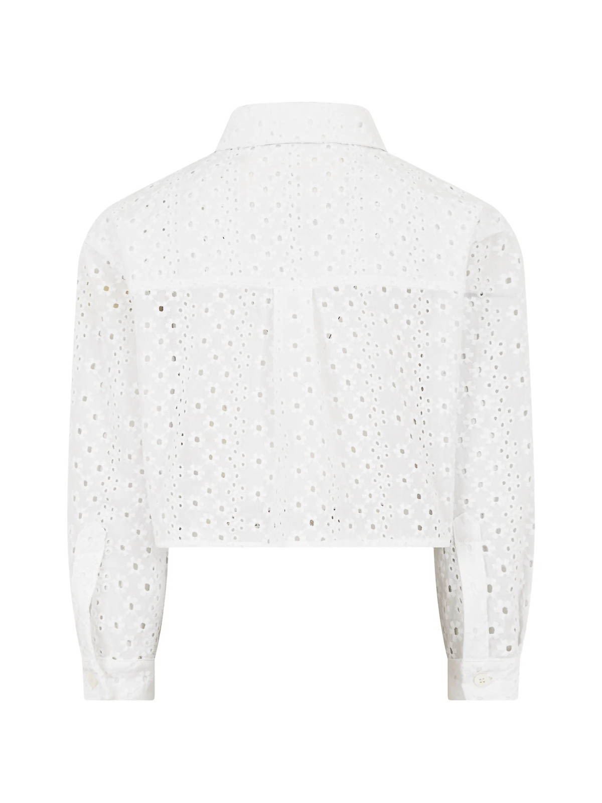 Flores blancas con botones de encaje inglés, bolsillo plano en el pecho, mangas largas