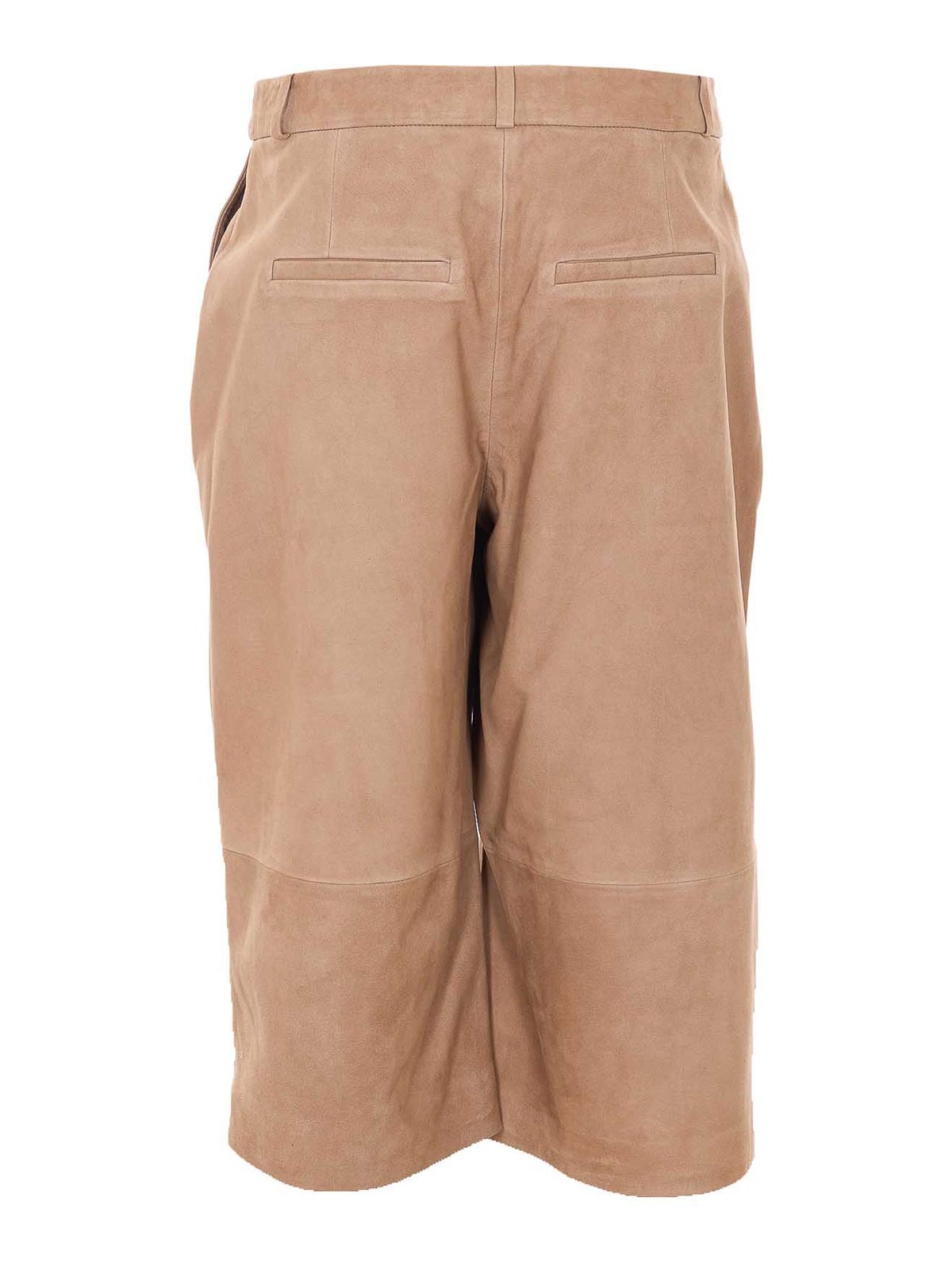 Pantalones cortos Arma de gamuza jina beige, cierre con botones, velcro y cremallera, bolsillos laterales