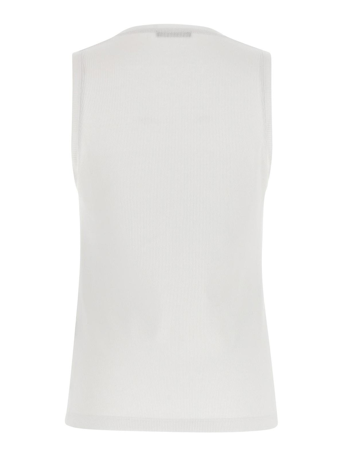 Camiseta sin mangas de algodón acanalado con logotipo bordado tono sobre tono en la parte delantera y cuello redondo.