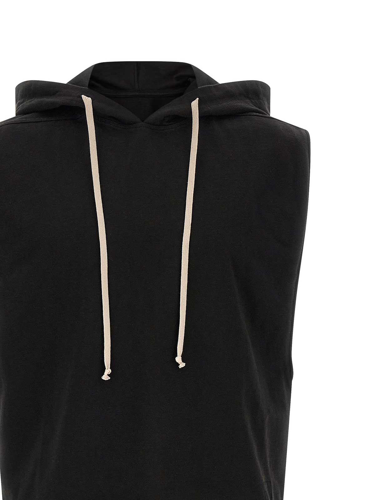 top de algodón tipo túnica con capucha ajustable, manga ancha doblada y dobladillo de corte crudo.