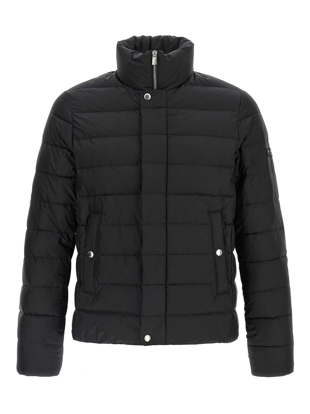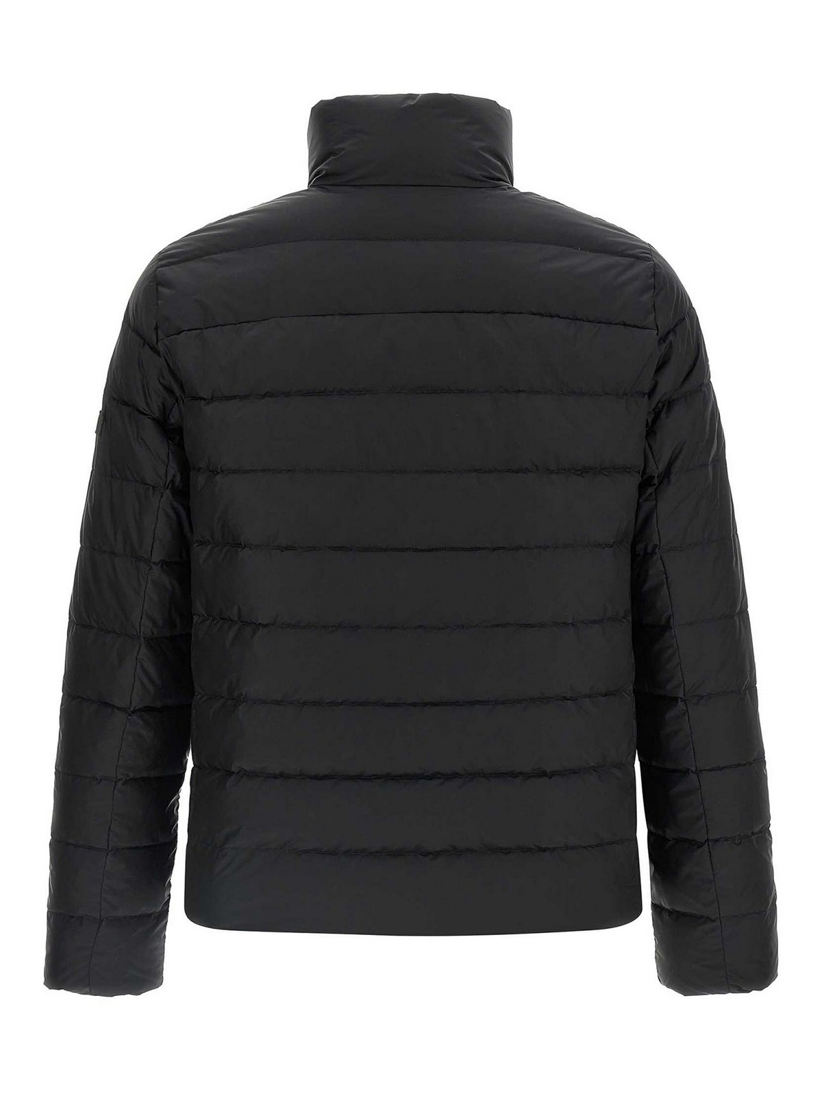 atene' slightly shiny quilted taffeta jacket with goose down padding, light down model, standing collar, front zip and snap button closure, pockets, long sleeves with elastic cuffs.