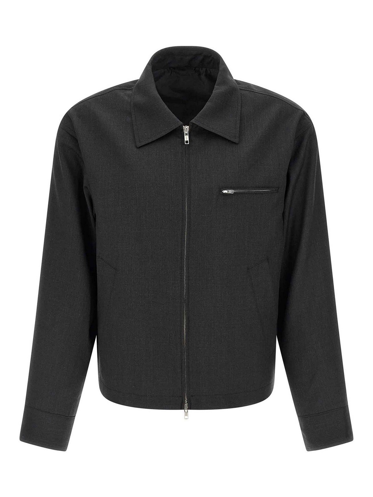postal' lightweight wool jacket with a thin two-tone weave, shirt collar, front zip closure, pockets, long sleeves with adjustable cuffs, adjustable straps on the hem, half lining.