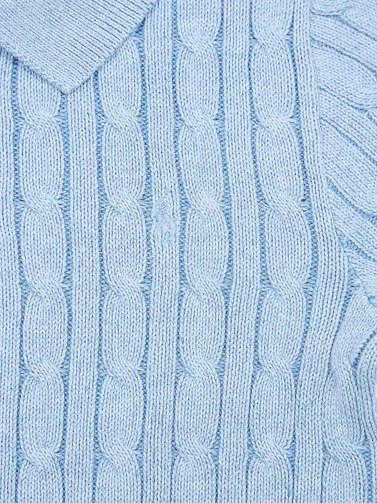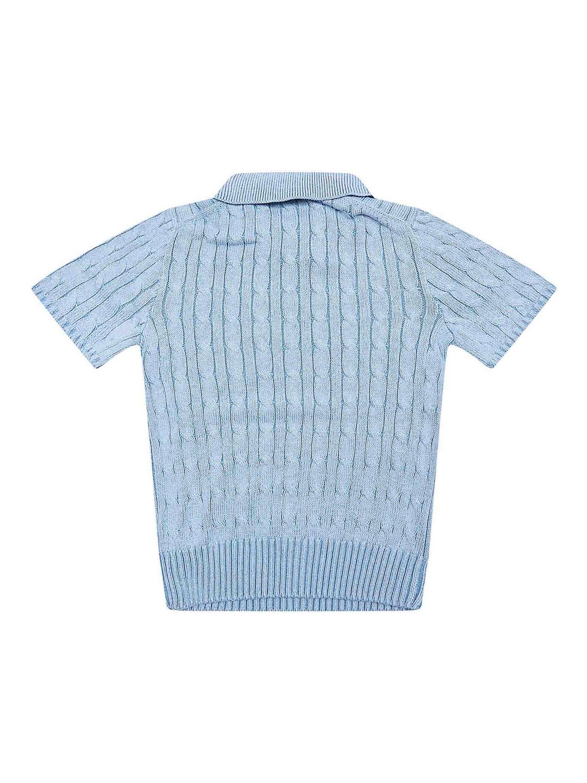 Maglione in filati di pettinato con caratteristico motivo a trecce di ralph lauren kids collo polo in maglia a coste come polsini maniche corte ed orlo abbottonatura a tre bottoni caratterizzato da pony ricamato sul lato sinistro del petto