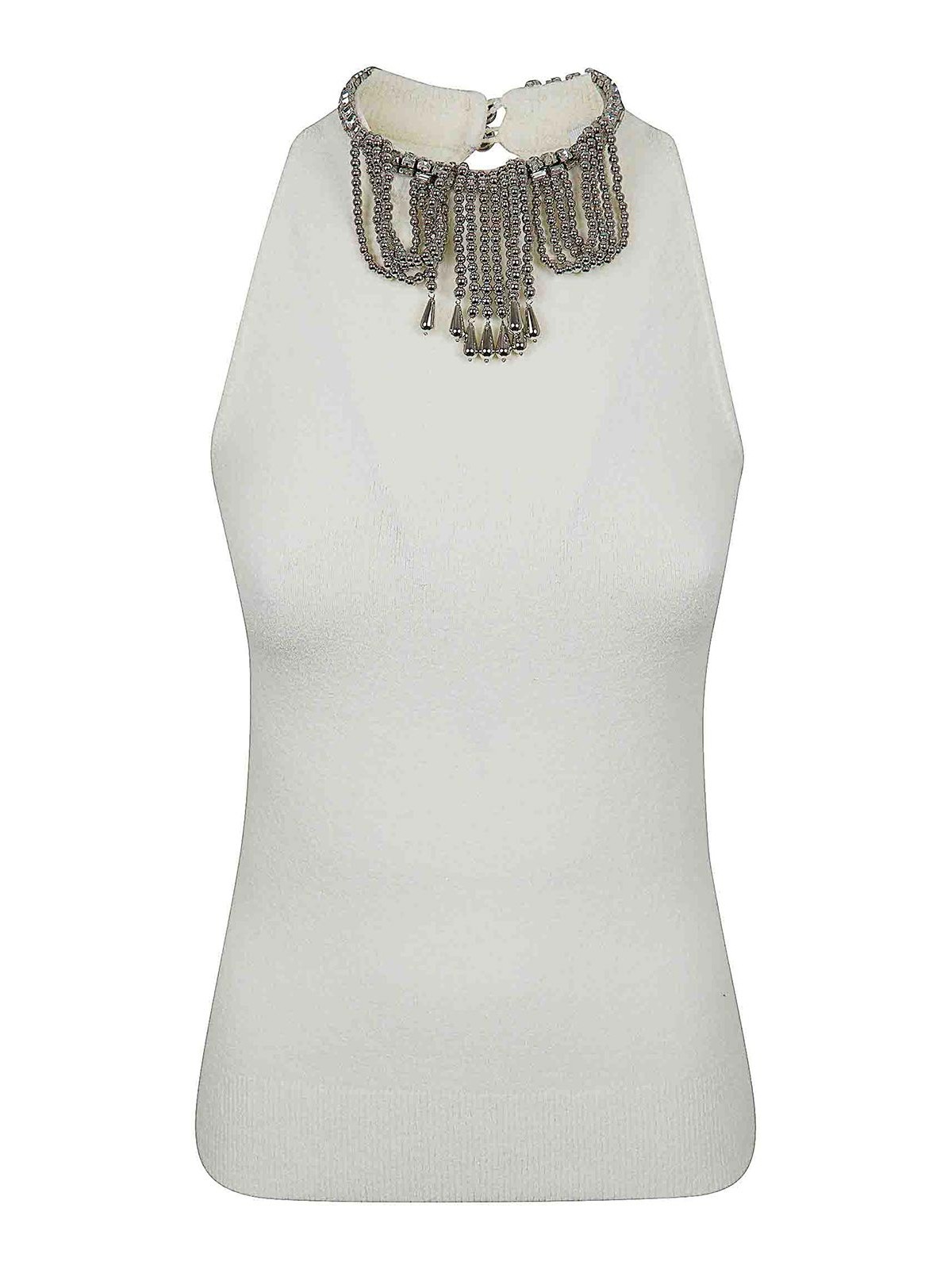 Crema scollo decorato a taglio smanicato cuciture tono su tono vestibilita' aderente