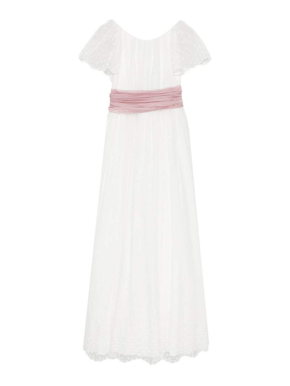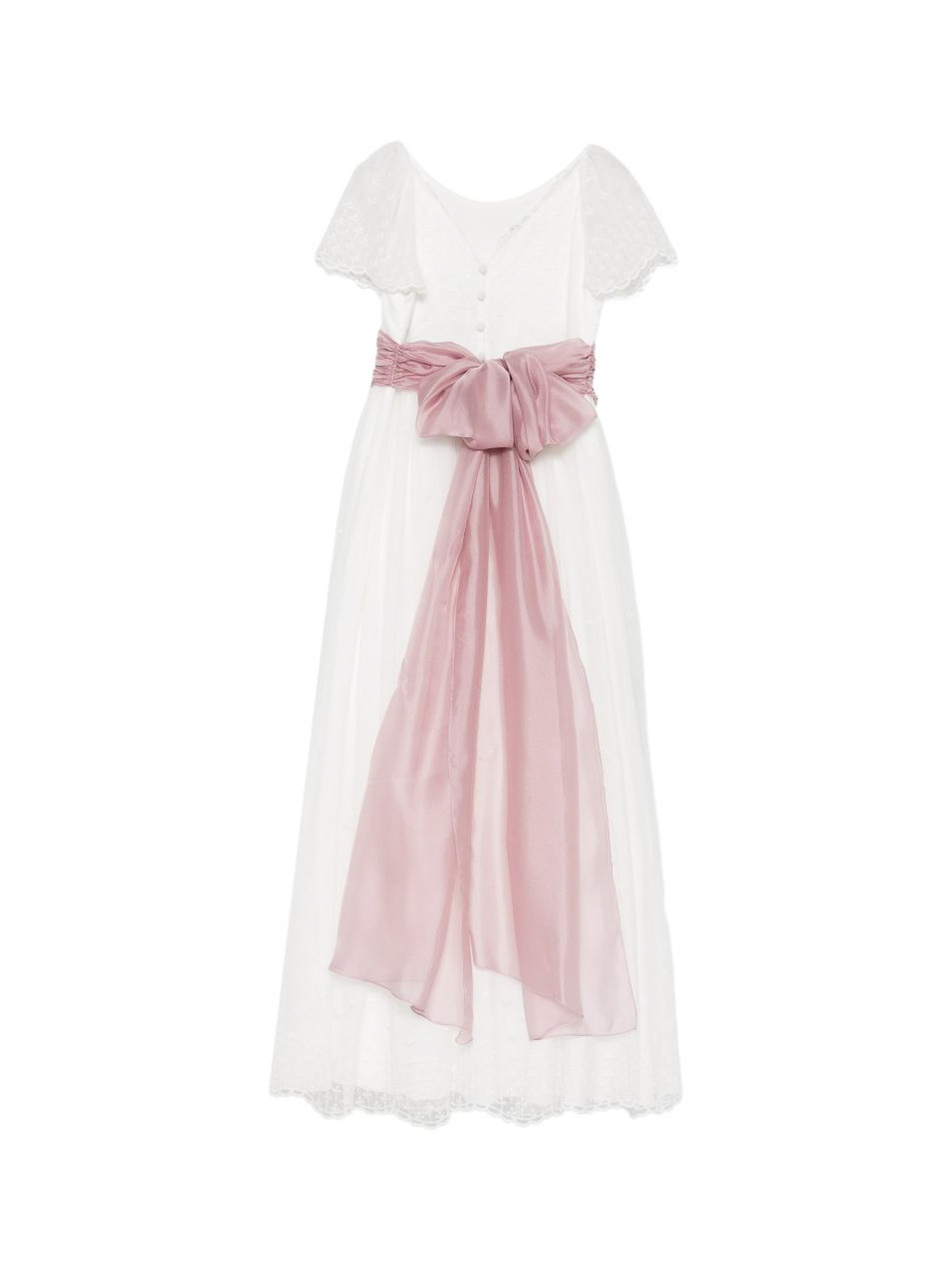 レーススリーブとボウベルト付きドレス
