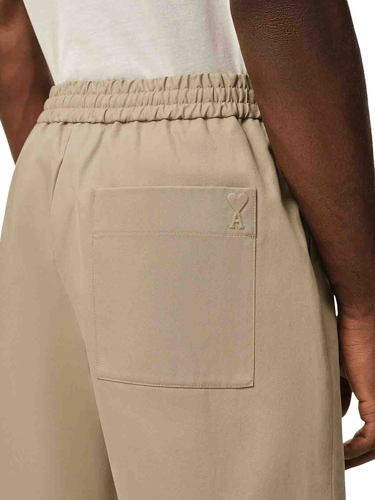 クラシックフィット、撥水生地、ボタン付き伸縮性ウエストバンド、内部ドローストリングウエスト、ファスナー開閉、背面にパッチポケット、バックポケットにアミ・ド・クールロゴのエンボス加工とステッチを施したレギュラーフィット。通常のサイズを選ぶことをお勧めします。モデルの身長は188cm、サイズM、綿100%、色:ベージュトープ