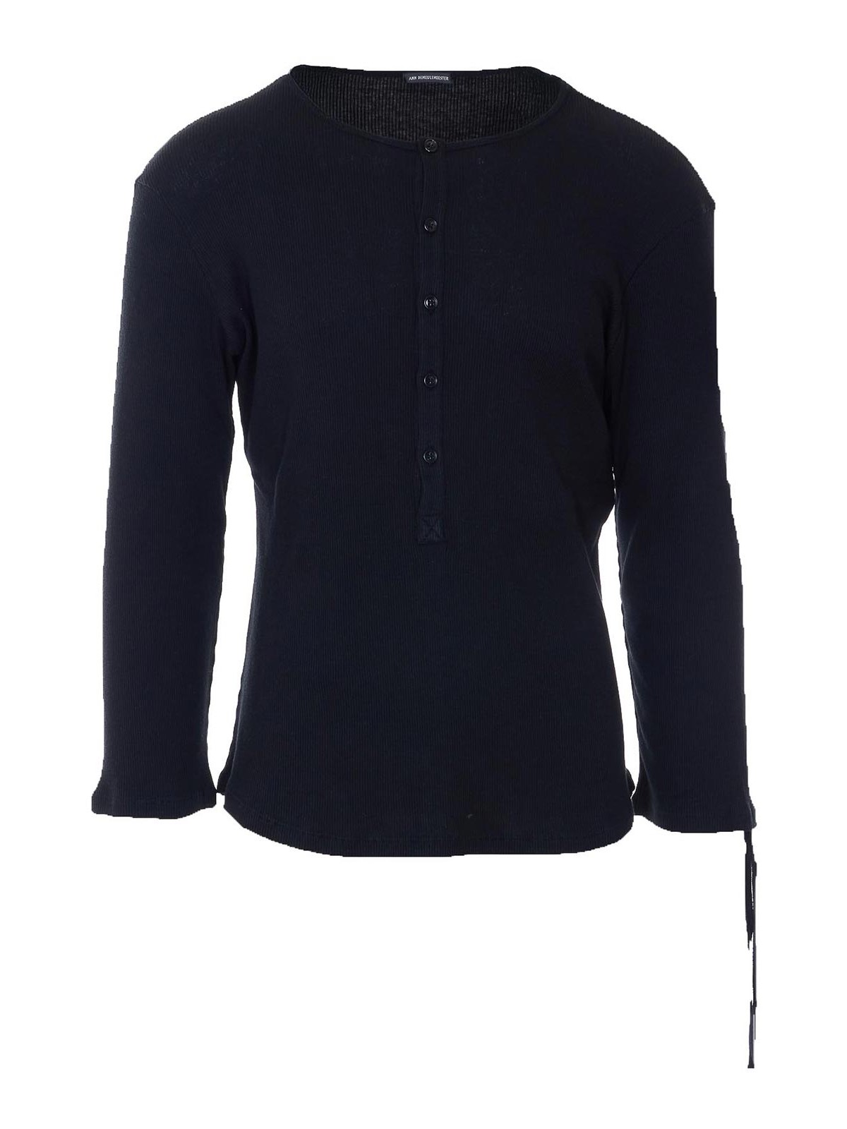 Ann demeulemeester ブラックイリアスセラフィーノトップ、ボタン留め、ロングスリーブ、袖口にクーリス